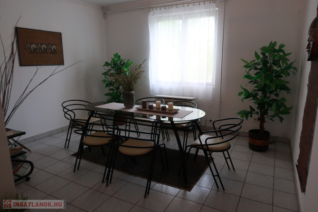 Nyíregyházán, Nyírszőlősön megvételre kínálunk egy szintes, 140 nm-es, tufa / szilikát szerkezetű, konyha, étkező, 3 szoba, 2 nappali és 2 fürdőhelyiséggel rendelkező családi házat. Az ingatlan szép állapotú, fa dupla üvegű nyílászárókkal felszerelt, járólapokkal és laminált burkolatokkal burkolt, tágas és világos terekkel rendelkező. Az ingatlanhoz továbbá tartozik egy 70 nm-es pince, garázs, 12 nm-es fedett pihenő terasz, filagória valamint szalonnasütő is, tetőszerkezete Bramac tetőcserép. Fűtéséről egyedi gáz kazán gázkonvektorokkal gondoskodik. Kérem keressenek bizalommal kérdéseikkel. Az ingatlan azonosítója: 92003Érdeklődni: +36304092510 Az ingatlan azonosítója: 92003 Érdeklődni: +36304092510