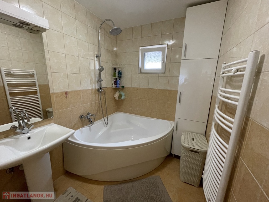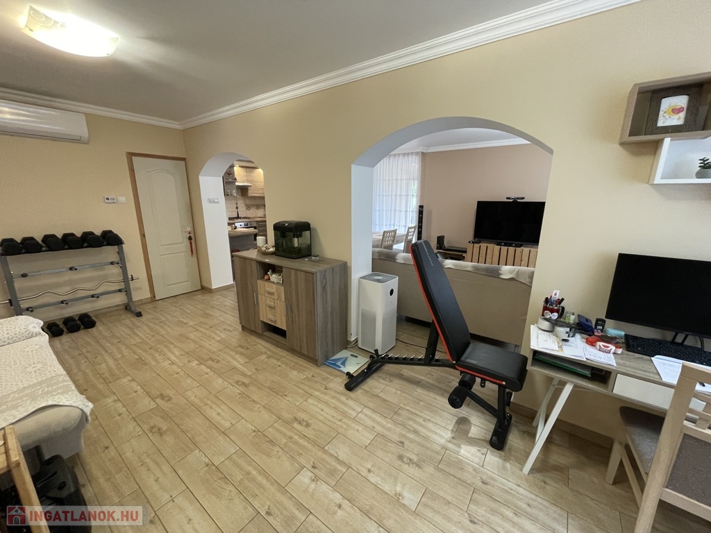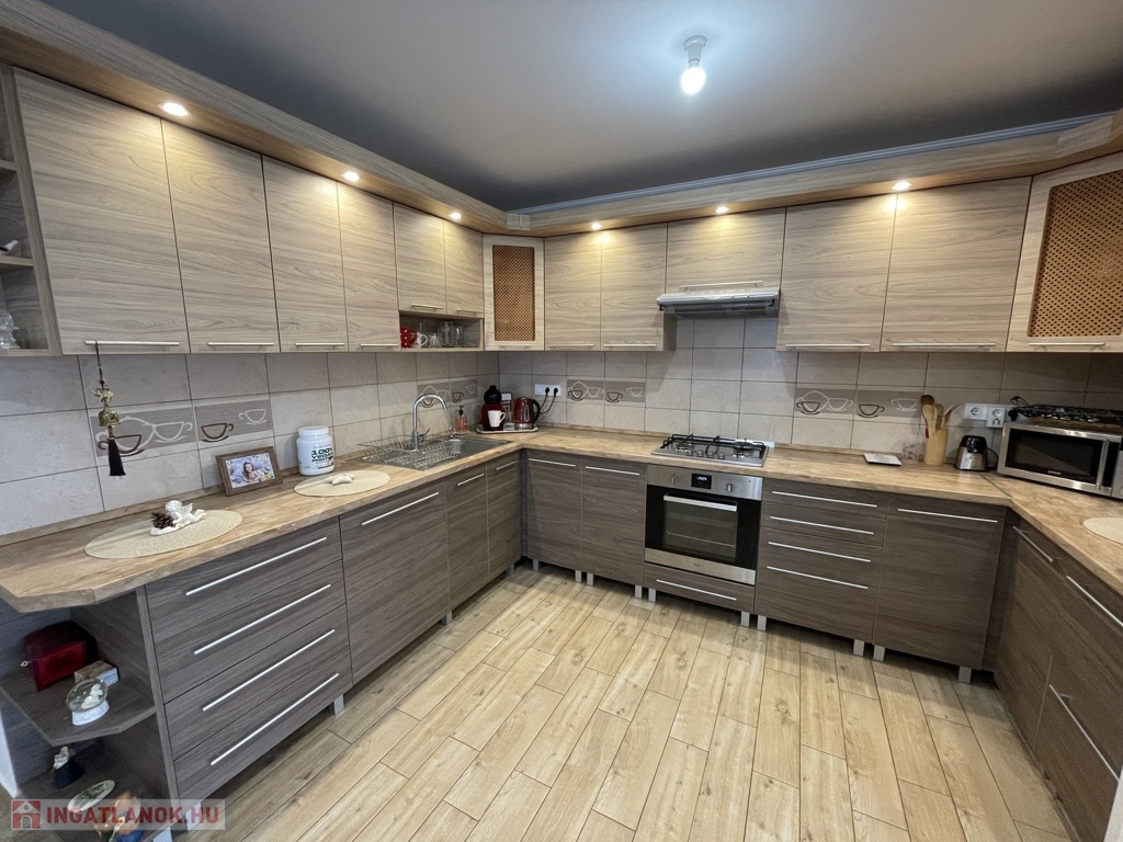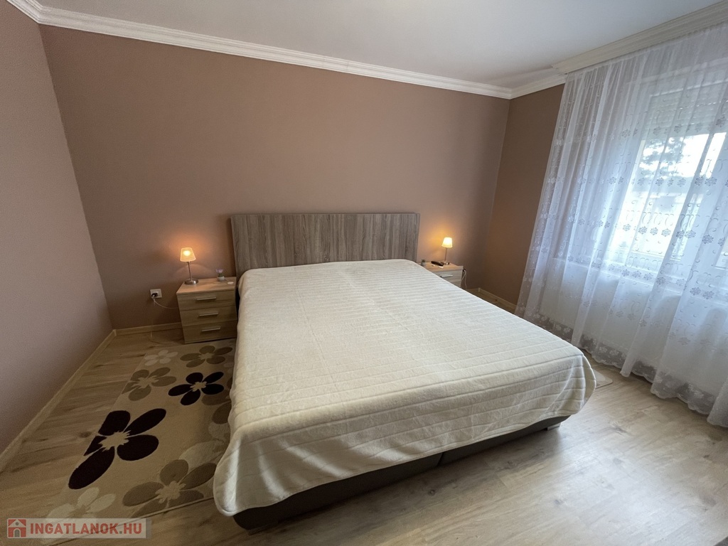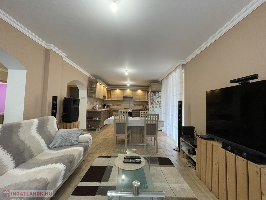 Nyírszőlős csendes, zöldövezeti részén, zsákutcában kínálunk eladásra egy 1999-ben épült, 89 m²-es, teljes körűen felújított, azonnal költözhető családi házat. Az ingatlan jelenlegi elosztása két különnyíló, tágas szobát és egy világos, amerikai konyhás nappalit kínál, azonban kis ráfordítással könnyedén háromszobássá alakítható. A fűtésről korszerű gázüzemű kondenzációs kazán gondoskodik, amely vegyes tüzelésű kazánnal is kiegészül, padlófűtéssel és radiátorokkal. A ház kiváló hőszigeteléssel rendelkezik (10 cm), műanyag nyílászárói redőnnyel és szúnyoghálóval szereltek, a nyári komfortot klíma biztosítja. A konyha egyedi tervezésű beépített bútorral és gépesítéssel kerül átadásra. Az udvarban kétállásos garázs elektromos kapuval, különálló kazánház és tároló is helyet kapott. A telek 3605 m², hátsó részén gondozott gyümölcsfákkal (három sor szilvafa), az utcafronti kapu szintén elektromos, távolról, Wi-Fi alkalmazással vezérelhető külső világítással felszerelve.