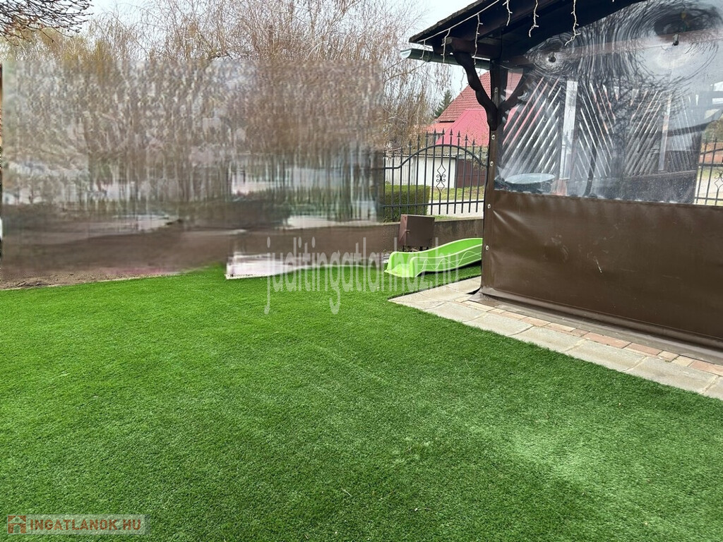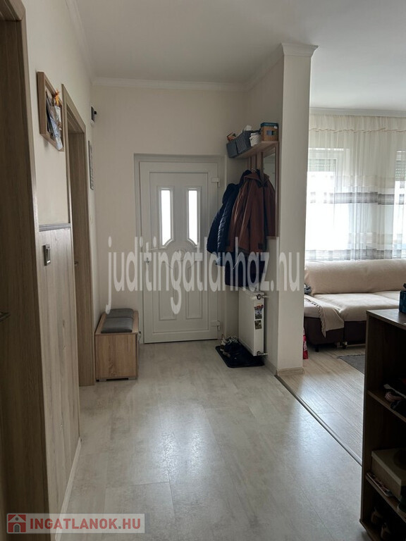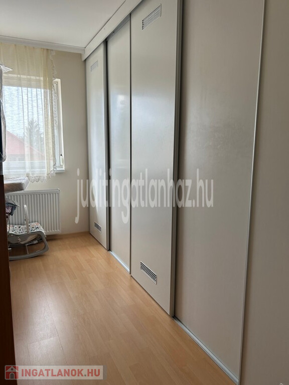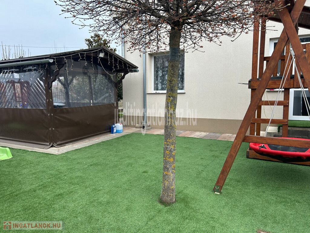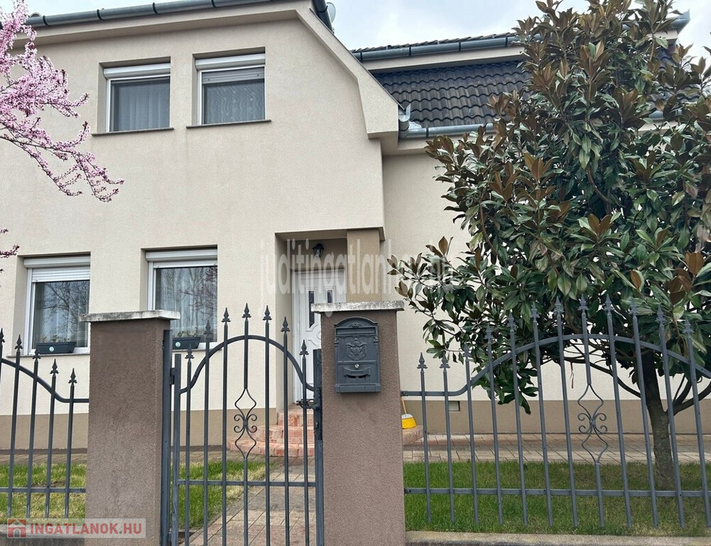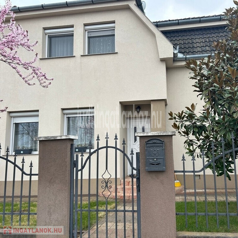 Nyíregyháza, Borbányán szép aszfaltozott utcában eladó egy tehermentes újszerű állapotú ikerház a 121 m2-s, három különnyíló szobás, nappalis, gardrob, konyha+étkezős, kamra, fürdőszoba külön wc, zuhany+wc felszereltségű, műanyag nyílászárós mely két ablak kivételével redőnyözött és egyedi gázfűtésű. Az ingatlanak kétlakásos ikerház besorolása van de nincs osztatlan közös területe. A ház 2008-ba épült porotherm 30-s téglából, külsőleg 12,5 cm-s nikecel szigetelés borítja, beton födémes a tető betoncseréppel fedett, telekterület 250 m2-s, kiépített öntöző rendszer található a kertben. Hozzá tartozik a beépített gépesített konyhabútor a hűtő-fűtő klíma, udvarban fedett gépkocsibeálló. A bejárat térkövezett a kerítés kovácsolt vas elemekkel kiegészített. Birtokba adás megbeszélés tárgya.