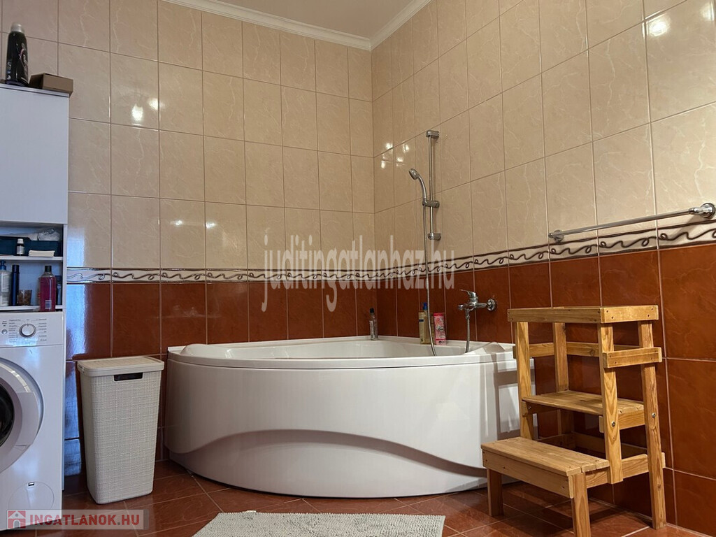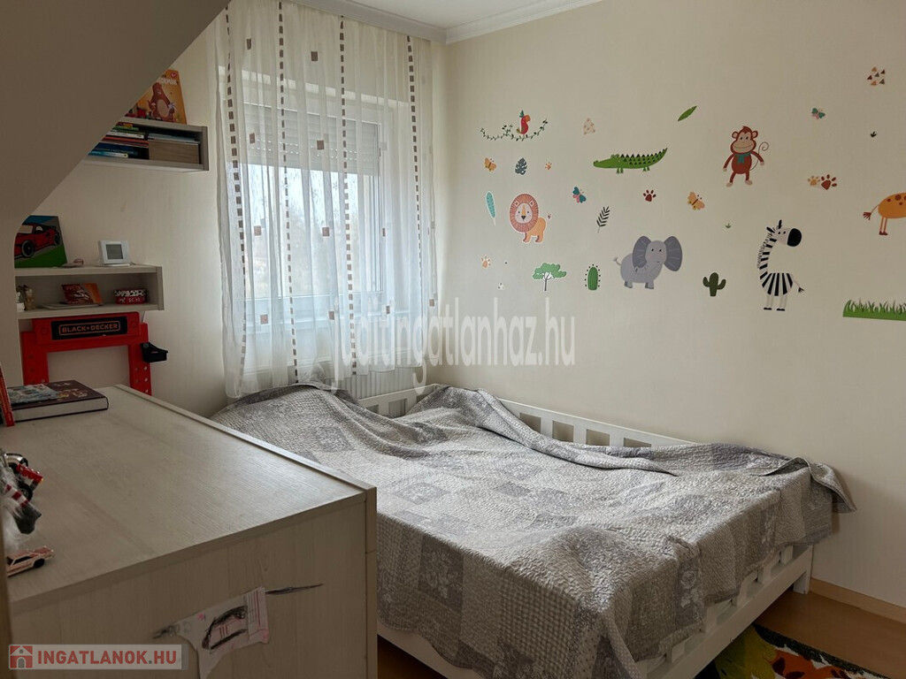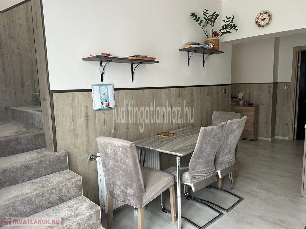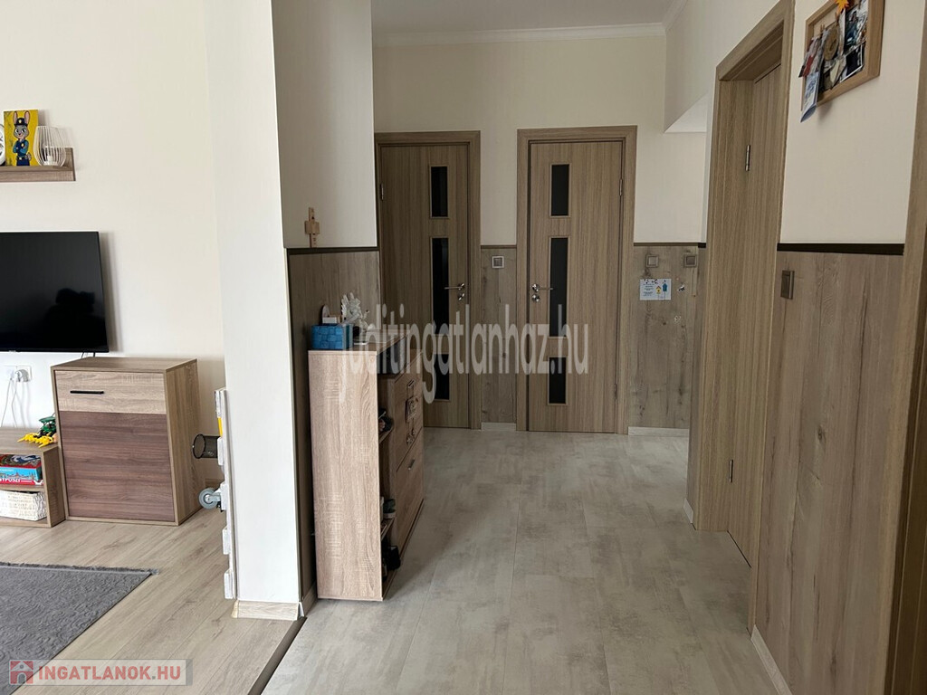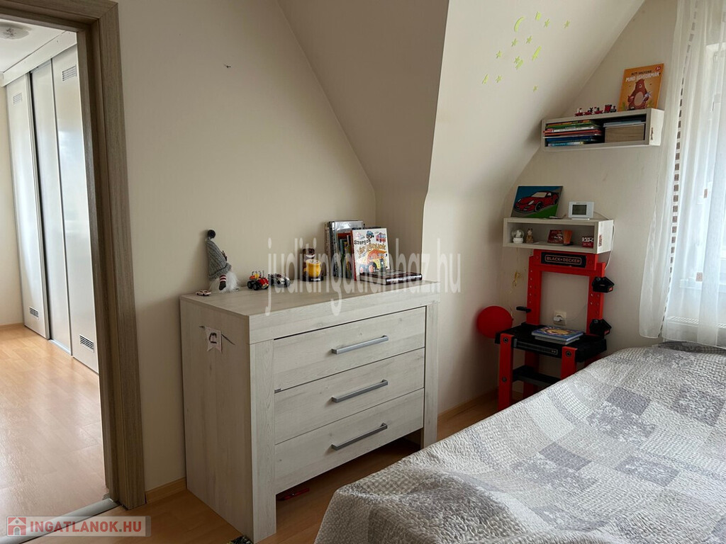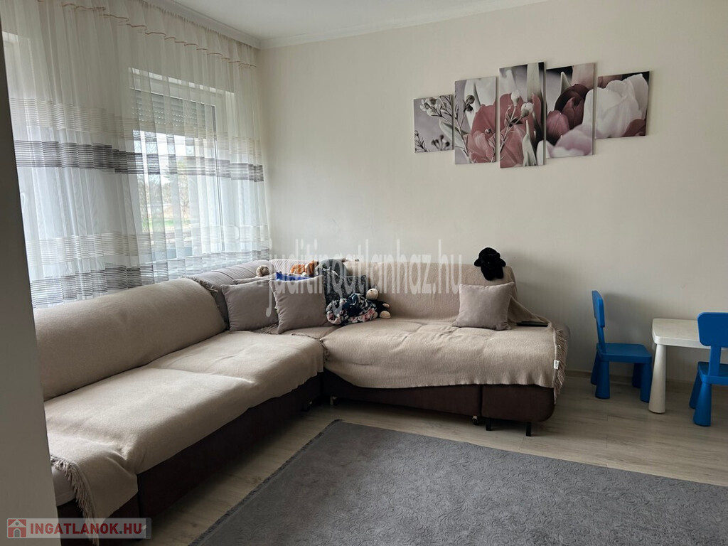 Nyíregyháza, Borbányán szép aszfaltozott utcában eladó egy tehermentes újszerű állapotú ikerház a 121 m2-s, három különnyíló szobás, nappalis, gardrob, konyha+étkezős, kamra, fürdőszoba külön wc, zuhany+wc felszereltségű, műanyag nyílászárós mely két ablak kivételével redőnyözött és egyedi gázfűtésű. Az ingatlanak kétlakásos ikerház besorolása van de nincs osztatlan közös területe. A ház 2008-ba épült porotherm 30-s téglából, külsőleg 12,5 cm-s nikecel szigetelés borítja, beton födémes a tető betoncseréppel fedett, telekterület 250 m2-s, kiépített öntöző rendszer található a kertben. Hozzá tartozik a beépített gépesített konyhabútor a hűtő-fűtő klíma, udvarban fedett gépkocsibeálló. A bejárat térkövezett a kerítés kovácsolt vas elemekkel kiegészített. Birtokba adás megbeszélés tárgya.