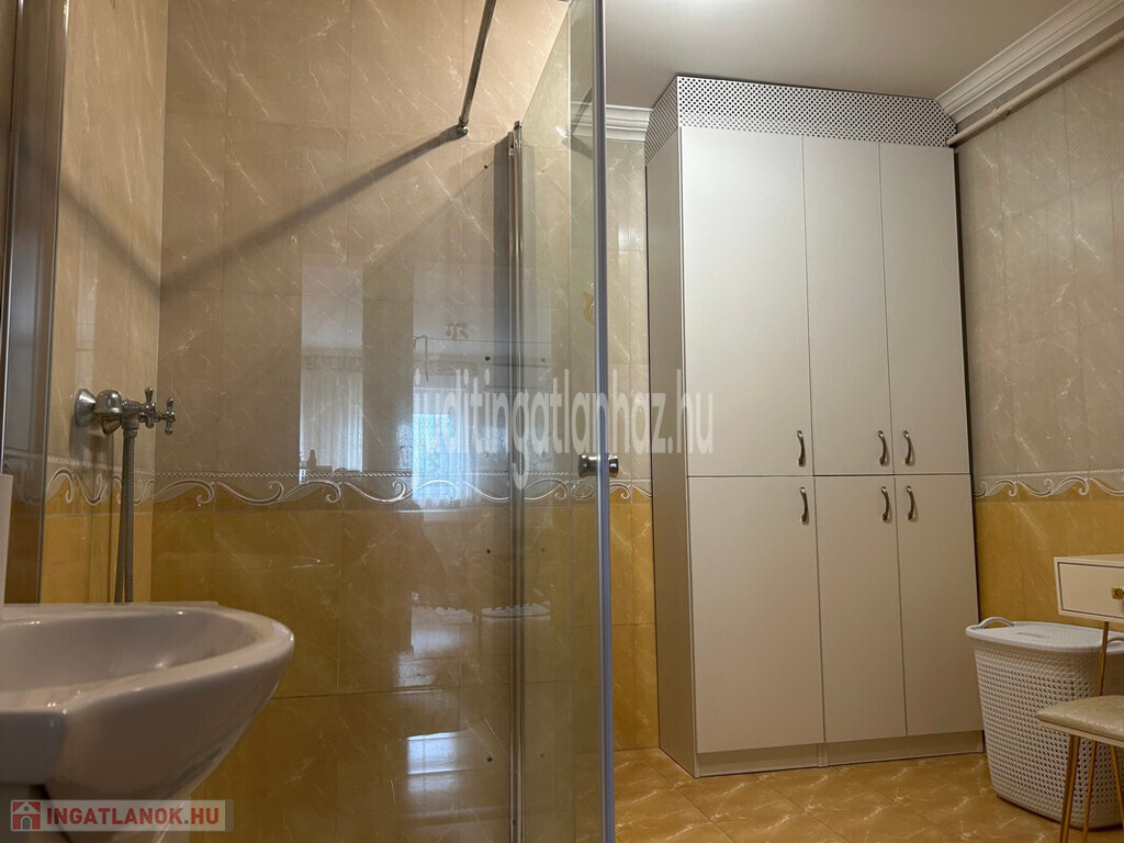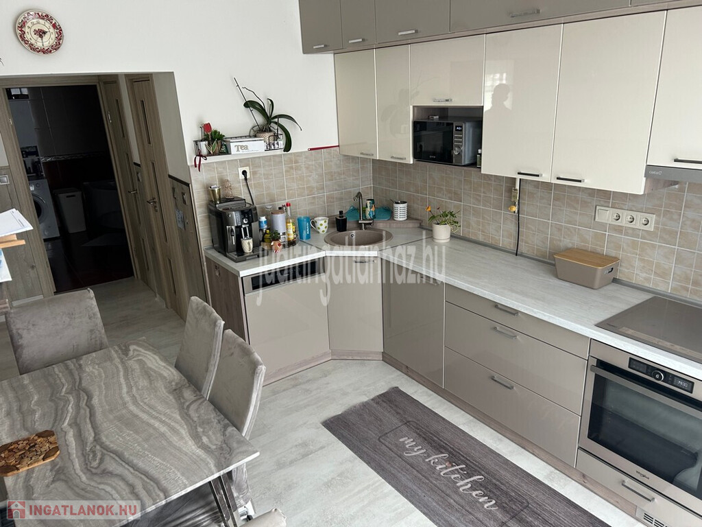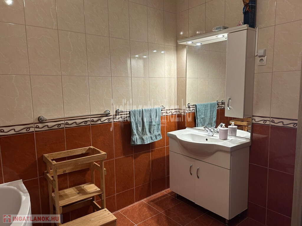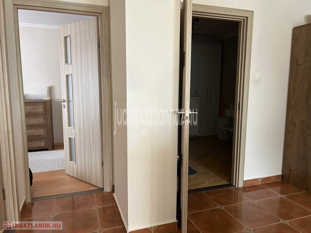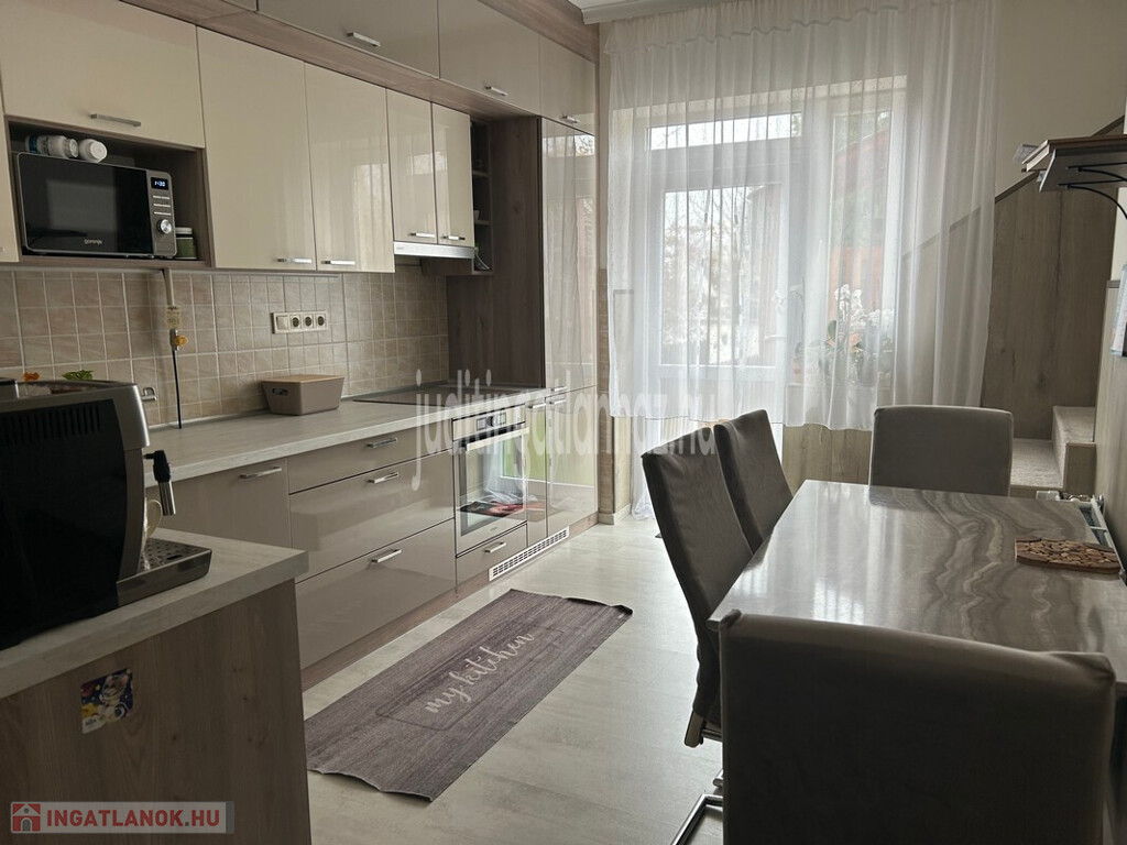 Nyíregyháza, Borbányán szép aszfaltozott utcában eladó egy tehermentes újszerű állapotú ikerház a 121 m2-s, három különnyíló szobás, nappalis, gardrob, konyha+étkezős, kamra, fürdőszoba külön wc, zuhany+wc felszereltségű, műanyag nyílászárós mely két ablak kivételével redőnyözött és egyedi gázfűtésű. Az ingatlanak kétlakásos ikerház besorolása van de nincs osztatlan közös területe. A ház 2008-ba épült porotherm 30-s téglából, külsőleg 12,5 cm-s nikecel szigetelés borítja, beton födémes a tető betoncseréppel fedett, telekterület 250 m2-s, kiépített öntöző rendszer található a kertben. Hozzá tartozik a beépített gépesített konyhabútor a hűtő-fűtő klíma, udvarban fedett gépkocsibeálló. A bejárat térkövezett a kerítés kovácsolt vas elemekkel kiegészített. Birtokba adás megbeszélés tárgya.