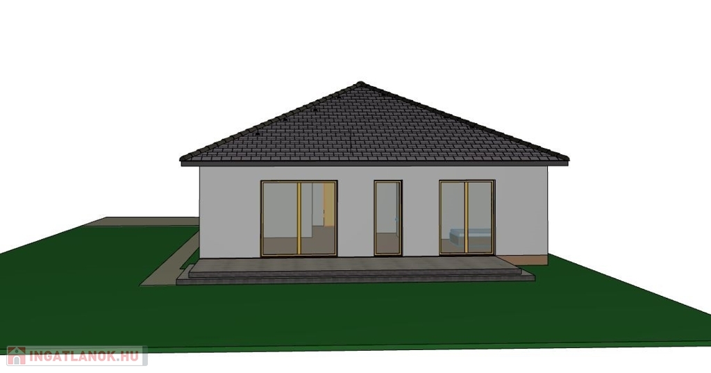 A kert végében különálló garázs is építhető (külön megállapodás alapján a beruházó kivitelezi).