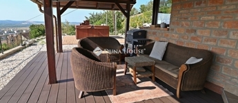 Pécs egyik legkeresettebb zöldövezeti részén, Makárban, 147-es, 4 szobás, modern ház, mely 1000 m2-es, telken helyezkedik el. A ház legkorszerűbb építőanyagokból, magas műszaki tartalommal, kifogástalan állapotú, modern technológiákkal, kiváló hőszigeteléssel épült, így hosszú távon is energiatakarékos és értékálló otthon.Főbb jellemzők:-147 m2-es lakótér, kiváló elrendezésű, tágas és világos- szobák száma: 4- saját önálló garázs- 54 m2 fedett terasz, tökéletes családi és baráti összejövetelekhez- örökpanorámás kilátás a városra és a Mecsekre- utcafronttól meredek térkövezett felhajtó a garázshoz, - autóval történő megközelítés biztosítottExtrák:- jakuzzi - privát wellness az otthonodban- riasztórendszer - maximális biztonság-klímaberendezés - kellemes hőmérséklet egész éveben- elektromos kapu - modern és kényelmes bejutás- külső tokos alumínium elektro9mos redőnyök - extra komfort és biztonság- beépített okos mosógép- gázfűtés - gazdaságos üzemeltetés- kandalló - hangulatos kiegészítő és alternatív fűtési lehetőségAz ingatlan csendes, elegáns környezetben helyezkedik el, mégis közel a belvároshoz. A környék kiváló infrastruktúrával rendelkezik, iskola, óvoda, bevásárlási lehetőségek és tömegközlekedés a közelben. A lenyűgöző panoráma és a prémium felszereltség együttese egyedülálló, értékálló otthont kínál igényes családok vagy befektetők számára.