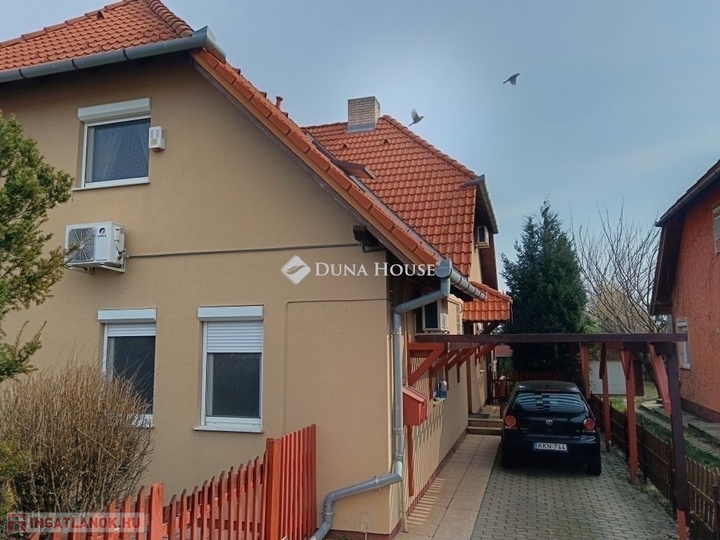 Tágas ikerház 600 m² telken eladó PécsÚjhegy kedvelt utcájában !Eladásra kínálunk egy kiváló adottságokkal rendelkező, két szintes sorházi otthont Pécs Újhegy egyik csendes, rendezett utcájában.Az ingatlan főbb jellemzői: 600 m²-es, sík telek összesen 140 m² lakóterület, melyből: Földszint: 80 m² Tetőtér: 60 m² Nappali-konyha-étkező 5 szoba+beépített gardrób 2 fürdő, 2 WC Építés 1991-ben. Jelentős átépítés és felújítás 2007 Nappaliból a belső udvarra nyíló 15 m²-es fedett teraszTovábbi jellemzők gáz cirkó fűtés vízteres gázkazánnal mindkét szinten fürdőszoba és WC mindkét szinten hűtő-fűtő légkondicionálók jó állapotú burkolatok gépesített konyha műanyag nyílászárók+redőny+szúnyogháló nappaliban teljes falszélességben tolóajtó+ motoros redőny térkövezett gépkocsibeálló 2 autó részére épített kerti grillező+ kerti tároló külső szigetelés kiépített riasztórendszer, biztonsági szolgáltatóhoz bekötveAz ingatlan ideális választás azoknak, akik tágas otthont keresnek terasszal és kerttel egy nyugodt, mégis jól megközelíthető városrészben.További információért vagy megtekintési időpontért keressen bizalommal a megadott elérhetőségeimen.