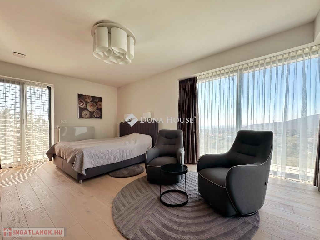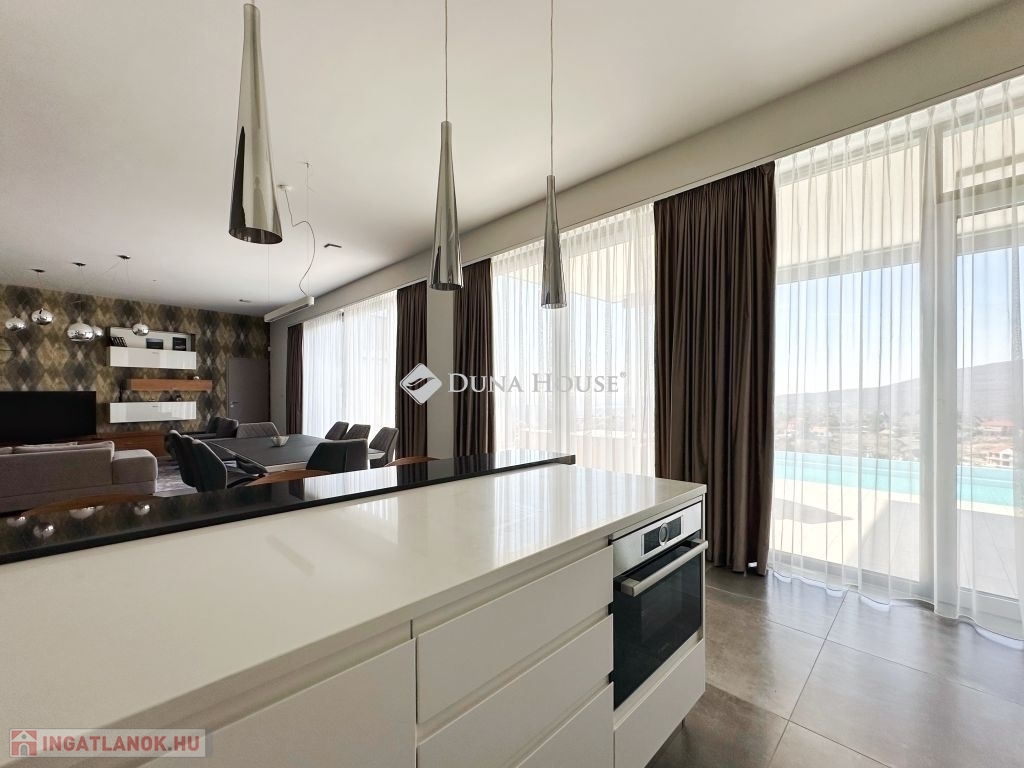 Exkluzív panorámás családi ház eladó Pécs MecsekoldalánPécs, Mecsekoldalon kínálunk megvételre kivételes adottságokkal rendelkező, újszerű állapotú családi házat. A gondosan megtervezett terek, a prémium anyaghasználat és a lenyűgöző körpanoráma tökéletes harmóniát alkotnak.Főbb jellemzők: 220 m² letisztult, elegáns lakótér 2087 m²-es, teljes intimitást biztosító telek 3 hálószoba, 2 fürdőszoba Világos, nagyvonalú belső terek, modern élettér-kialakítás 60 m²-es panorámás, részben fedett terasz 45 m²-es feszített víztükrű medence Privát szauna a teljes kikapcsolódásért Zavartalan körpanoráma Prémium műszaki tartalom: Energiahatékony hőszivattyús rendszer Wolf központi szellőztető rendszer Vízlágyító és automata öntözőrendszer Elektromos zsalúziák minden nyílászárón Riasztó- és kamerarendszer Magas szintű kivitelezés: 38-as PTH falazat, 10 cm-es hőszigeteléssel Modern alumínium nyílászárók Időtálló, elegáns mészkő homlokzat Prémium burkolatok: minőségi laminált parketta és mázas kerámia 40 m²-es garázs Hörmann kapuval Teljesen intim, zárt telek További értékek: Az ingatlan mindössze 5 éve épült, újszerű állapotban van Igény esetén teljes bútorzattal (megegyezés szerint) A vételár részét képezi egy kb. 700 m²-es, panorámás, részben közművesített telekrészEz az ingatlan ideális választás azok számára, akik kompromisszumok nélkül keresnek exkluzív otthont, páratlan környezetben.További információért kérem, keressen bizalommal!