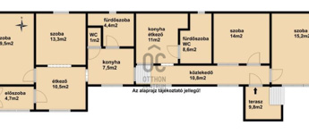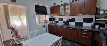- A ház helyiségei: 4 szoba, 2 konyha, előszoba, 1 külön WC, 2 fürdőszoba (az egyik WC-vel), étkező, terasz.