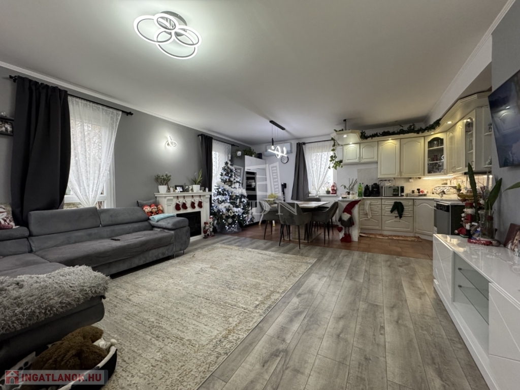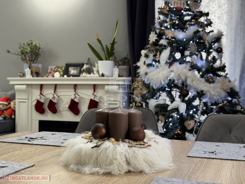 Az ingatlan 2008-ban épült Ytong falazattal és gipszkarton válaszfalakkal. Nyílászárói 2 rétegű üvegezésűek, részben redőnnyel és szúnyoghálóval felszereltek. Hideg-meleg burkolatjai jó állapotúak. A fűtést kombi gázkazán biztosítja radiátoros hőleadással, vizes helyiségekben padlófűtés is kialakításra került. Mindkét szinten split klíma gondoskodik a kellemes hőérzetről. Villanyhálózat 1x32A.