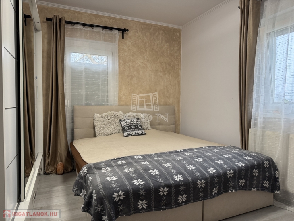 A telekterület 420m2, teljesen önálló, körbekerített és füvesített, térkövezett része alkalmas autóbeállónak.