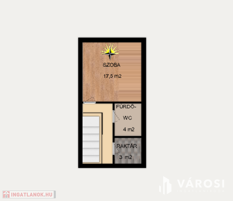 jelenleg: 1 nappali, 1 szoba, 1 fürdő WC-vel, közlekedő