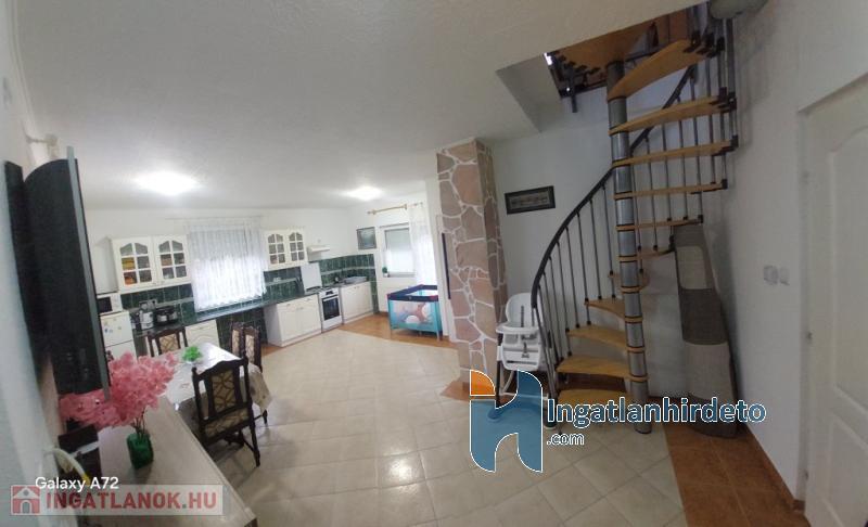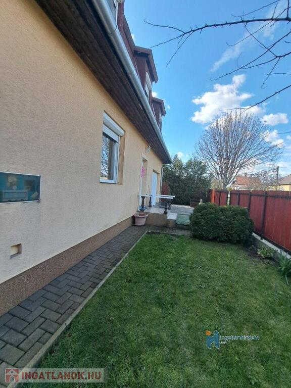 Elhelyezkedése: Belterület Tájolása: észak-nyugati tájolású Állapota: Kiváló Komfort besorolása: összkomfortos Építési éve: 2008 Alapterülete: 98 m2 Telekterülete: 450 m2 Szobák száma: 2szoba Közművek: Gáz, Víz, Villany, Csatorna Gázellátás: Vezetékes Vízellátás: Vezetékes víz Melegvíz-ellátás: Gázkazán Áramellátás: 230V Fűtés módja: Gáz Fűtés típusa: Cirkó Homlokzat állapot: új Építési mód: Tégla Tető formája: Magas Tető anyaga: Cserép Parkolási lehetőség: Garázsban, Utcán Kilátás: Udvari kilátás Napelem: Nincs Jellemzői: Alacsony rezsi, Csendes környék, Jó közlekedés, Két bejárat, Redőny, Fűtött garázs, Étkező, Udvari terasz, Amerikai konyha, Beépített szekrény, Beépített konyhabútor, Autóbeálló, Kert, Kerítés, Térkő, Zöldterület, Jó közbiztonság Energetikai besorolás: Nincs adat Egyéb jellemzők: Terasz Tv, Internet: Kábeltévé, Internet, Vezetékes telefon Közelben: Iskola, Óvoda, Vasútállomás, Autóbuszállomás, Helyi autóbuszállomás, Orvosi rendelő, Bolt, Gyógyszertár, Postahivatal, Vendéglátó egység, Autópálya Rezsi költség(Ft): 30000 Terhelések: Tehermentes ingatlan Eladásra vonatkozó információk: Azonnal beköltözhető