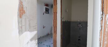 - Vizes helyiségek kiburkolva.