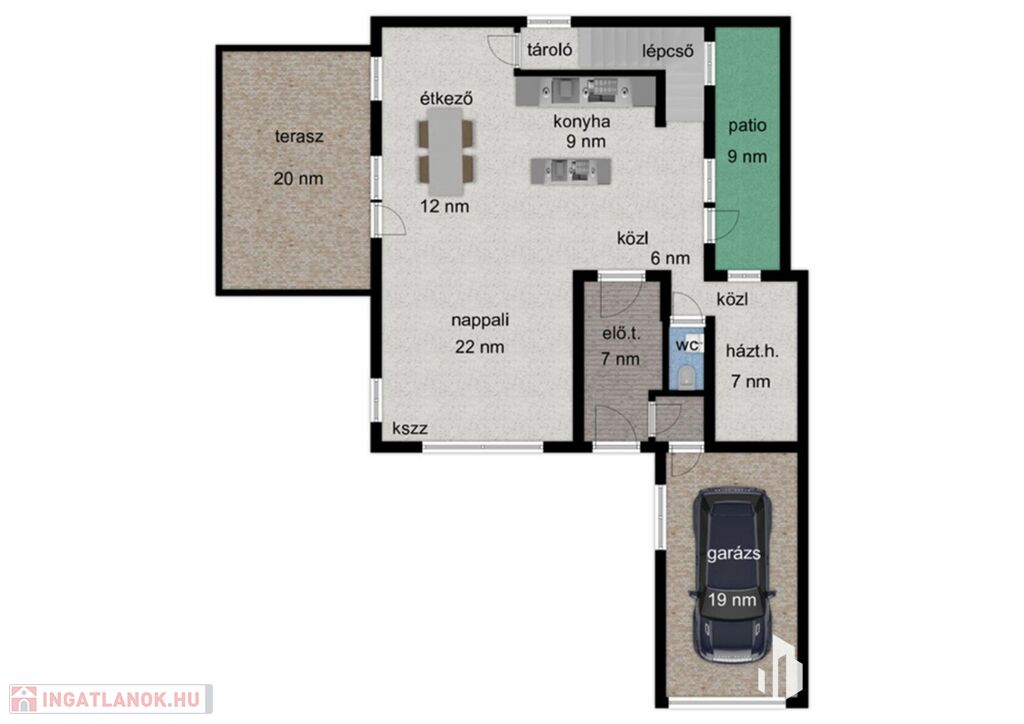 - 127 nm lakótér + 24 nm-es terasz, 8,7 nm patió.