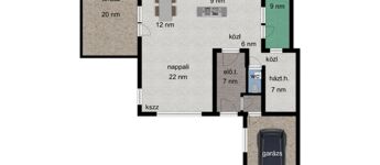 - Nappali, konyha ,3.szoba, 1 fürdő, 2 WC, gardrób,háztartási helyiség, tároló,garázs,terasz.patio.