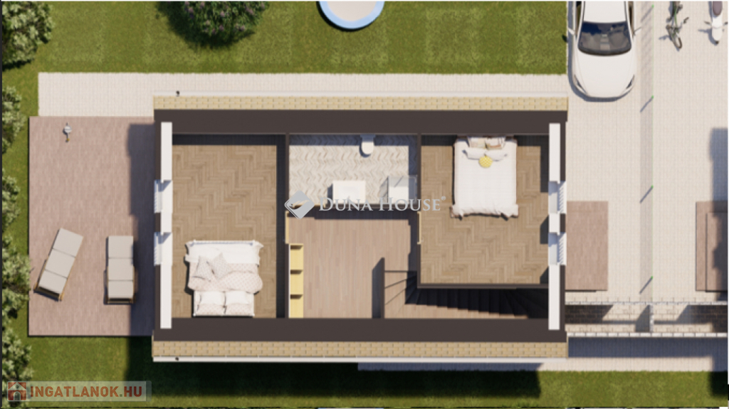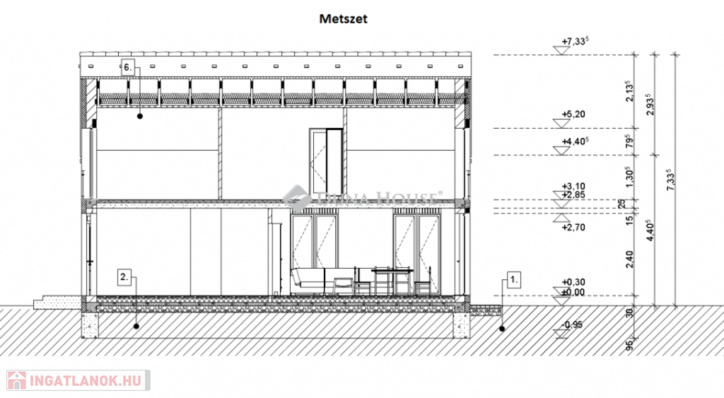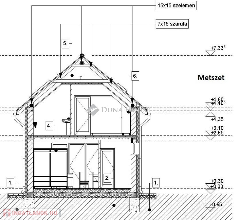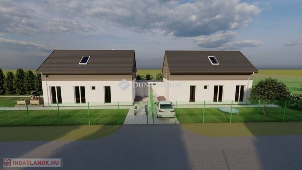 Szegeden - Marostő részén, kulcsrakész, új építésű ház eladó!Szeged városának Újszeged-Marostő részén - Szeged úgynevezett Rózsadombján - új építésű családi ház eladó! A városrész jellegzetessége, hogy a környék nagyon szép, igényes új építésű házakkal van körülvéve.Egy telken belül - megosztott használatban - két egyforma ház épül. Ehhez az ingatlanhoz 234 négyzetméter alapterület tartozik. A telken elhelyezkedő ház 103 négyzetméter. Két szintet kapott. Az alsó szinten kialakításra került egy nappali + konyha, egy szoba, fürdőszoba + WC, közlekedő, illetve egy kamra. A nappaliból nyílik a terasz, ami 18 négyzetméteres. A lépcsőn feljutunk a tetőtér közlekedőjébe, ahonnan külön nyílik két szoba, illetve egy zuhanyzó + WC. Ajánlom mindazoknak, kik egy nagyobb város külső, igényes részében szeretnének maguknak új, modern otthont. Lévén hogy egymás mellett van két egyforma ház, akár generációk szomszédos összeköltözését is lehetővé teszi, de persze külön-külön is megvásárolhatók.A kulcsrakész állapot tartalmazza a hideg-és melegburkolatokat, színre festést, szanitereket, kiállásokat, villanykapcsolókat, napelem rendszer betelepítésének az előkészítését. Ahogy a látványtervek is mutatják, több homlokzati szín közül is lehet választani. A vételár részét képzi még a tereprendezett udvar, térkövezett járda, autóbeálló, kerítés, valamint kapu. További, egyedi igények esetén is nyitott a kivitelező.Pár szó a szerkezetről:A sávlapok betongyári betonból készültek. Vasbeton lábazatra került a falazás Porothem 30 NF falazóblokkokból. Födém E jellegű vb. gerendák, köztük födém béléstestekkel. A gerendavégek a vb. födém koszorúba lettek ágyazva. A falazat oldalirányú stabilitásáért 5 db helyszínen öntött, függőleges vb. pillér gondoskodik.A tetőszerkezet gomba-és tűzmentesített szerrel kezelt fenyő, ácsolat szarufa párokkal erősítve. A tetőhéjazat TONDACH CLASSIK tetőcserép. A homlokzat 15 cm keresztmetszetű szigeteléssel lett ellátva. A tetősík belső szigetelése 2 réteg 15 cm kőzetgyapot. Külső nyílászárók SHÜCO 3 rétegű üvegezés. Az árnyékolásért motoros, alumínium redőnyök felelnek.A padló hegesztett, háló erősítésű szerelőbeton. Rajta talajnedvesség elleni 4 mm szigetelőlemez, 10 cm EPS 100 lépésálló hőszigetelő, fóliaterítés, rajta hegesztett háló, majd az ezekre tekert padlófűtés cső, s végül a 8 cm aljzat beton.Gépészet hűtést-fűtést, használati melegvizet levegő-víz hőszivattyús rendszer szolgáltat.A képek a kivitelezésről folyamatosan frissülnek. Kérdés vagy megtekintési szándék esetén, kérem keressenek bizalommal!