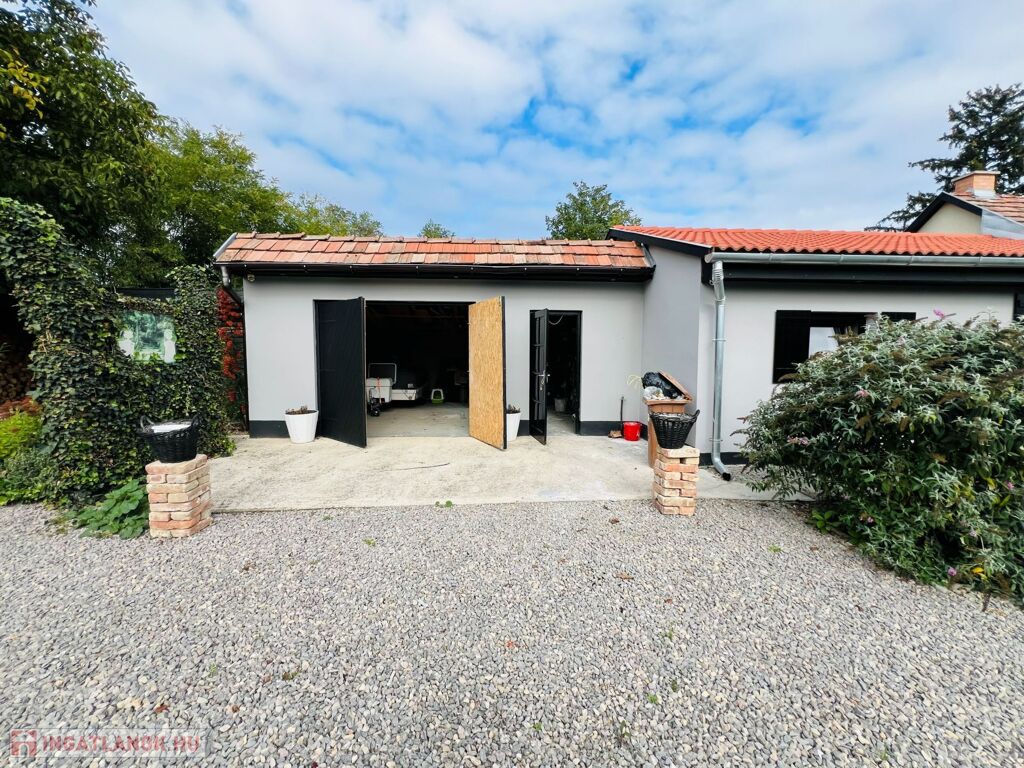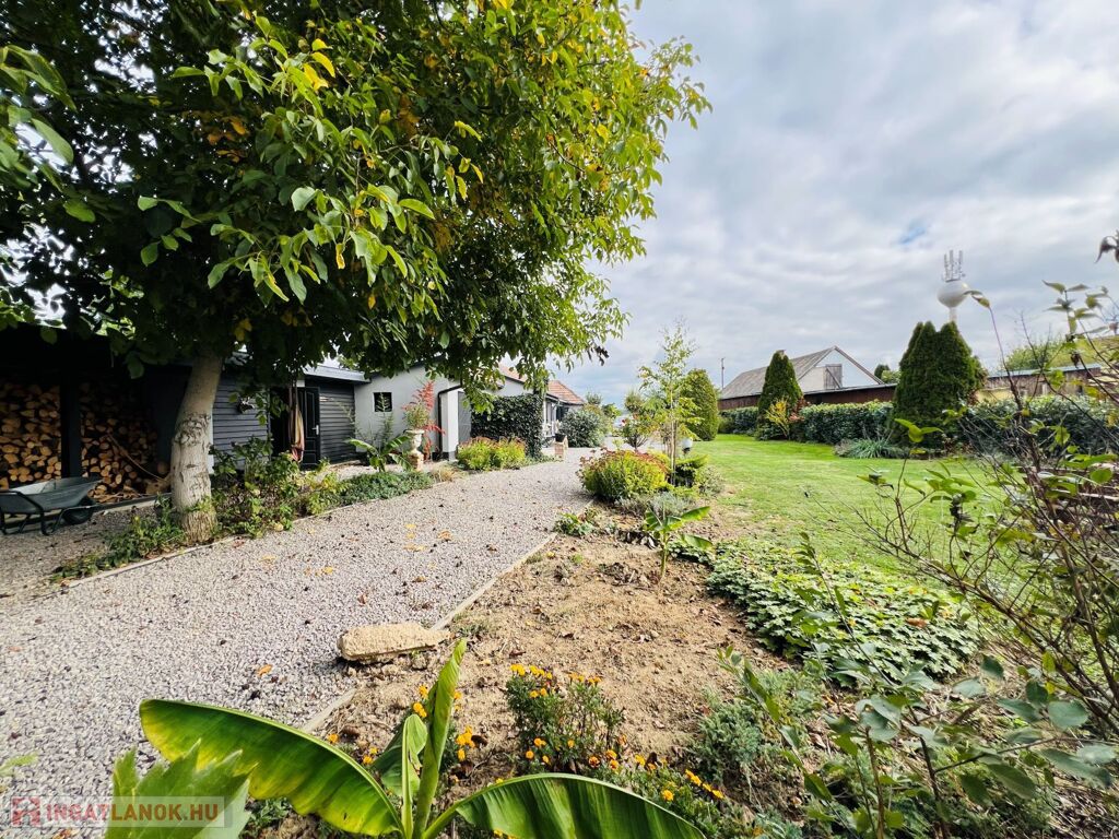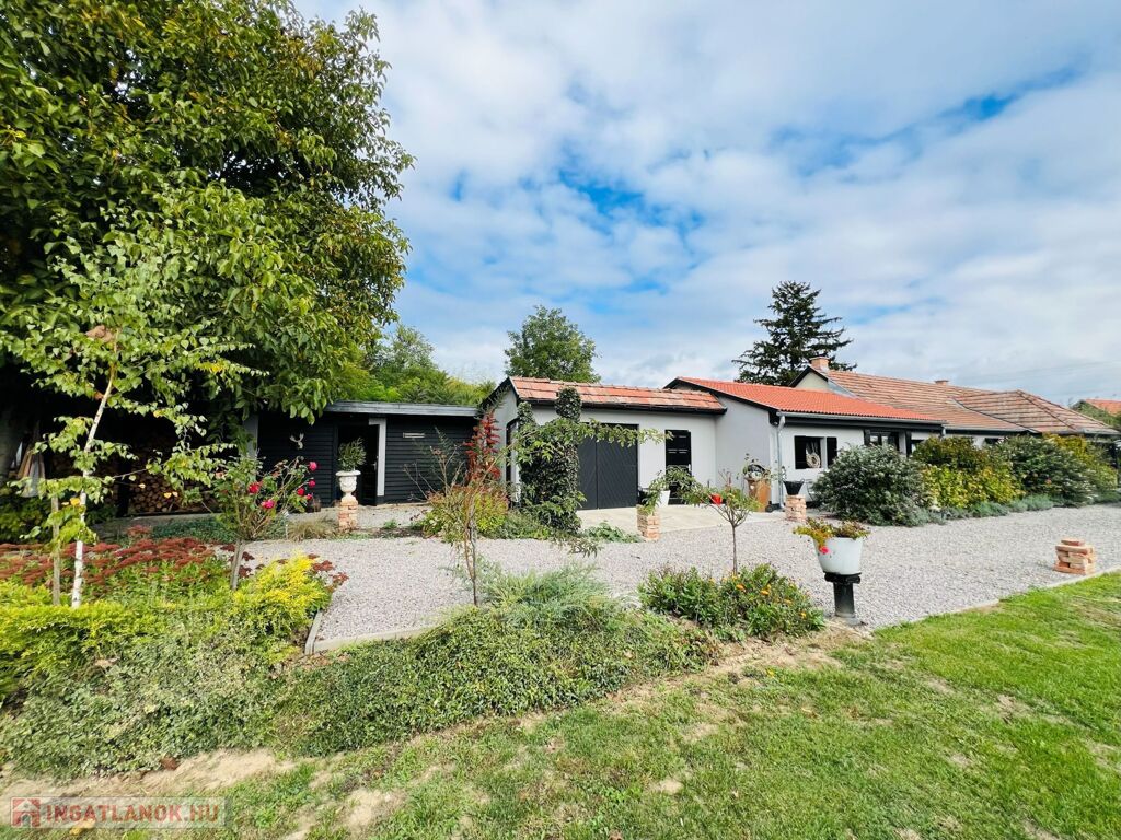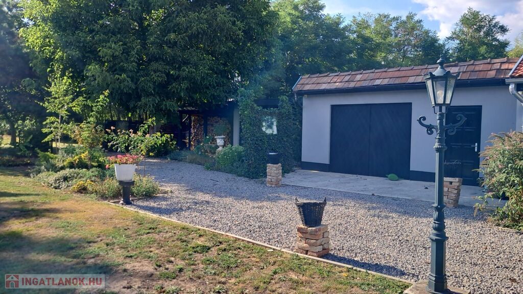 Telek: Az udvar tágas és gondozott, virágokkal, cserjékkel és bokrokkal díszített, teljes egészében körbekerített terület, amelyet rendezett szegéllyel határolt járda tesz még ápoltabbá. A hatalmas kert számtalan lehetőséget kínál a szabadidő eltöltésére: ideális hely a pihenéshez, grillezéshez, kertészkedéshez vagy akár kisebb gazdálkodáshoz is. A telken dupla garázs és fatároló található, a hátsó bejáratnak köszönhetően pedig az ingatlan autóval erről az oldalról is kényelmesen megközelíthető, lehetővé teszi lakókocsi beállását is, így a terület vendégek fogadására vagy hosszabb tartózkodásra is kiválóan alkalmas. A kert hátsó részén gondosan ápolt gyümölcsfák sorakoznak, tovább fokozva a természetközeli, vidéki atmoszférát.