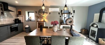 Fűtés: A fűtésről két fa tüzelésű kandalló és egy hűtő-fűtő klímaberendezés gondoskodik, a nappaliban pedig elektromos padlófűtés biztosítja az állandó kényelmet.