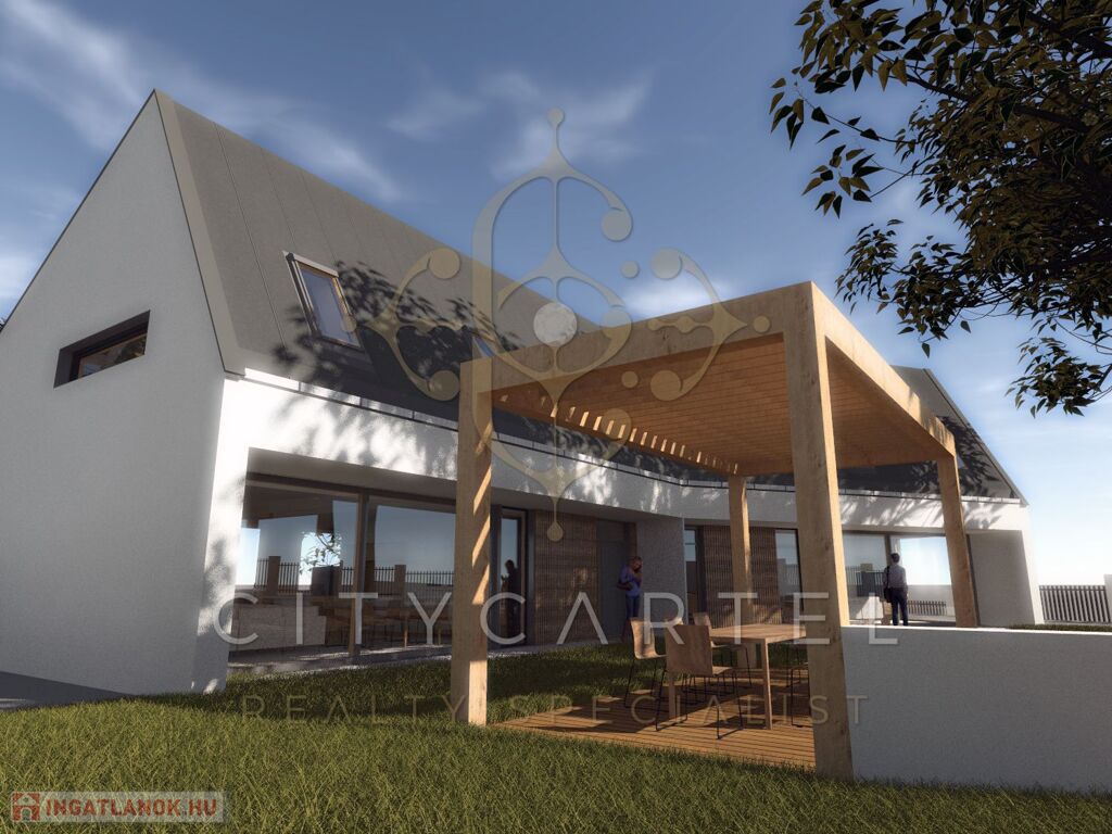 Szentendrén eladó modern stílusú 3 szintes ikervilla.