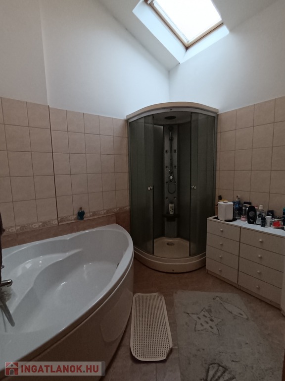 Az emeleten 3 hálószoba fürdőszoba és külön mosókonyha kapott helyet. A fürdőszoba világos, tágas zuhanykabinnal felszerelve.
