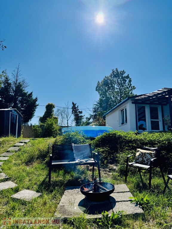 Szentendre egyik legszebb, csendes utcájában eladó ez a 661 m²-es, kivételes adottságú telek, rajta egy 43 m²-es, acélvázas, 20 cm hőszigetelésű készházzal és egy 23 m²-es panorámás terasszal.