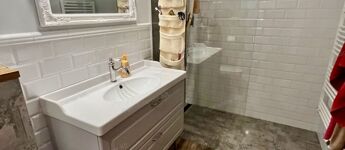 - Hatalmas zuhanyzóval ellátott fürdőszoba