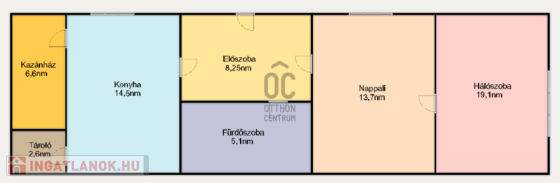 - Helyiségek: 2 szoba, előszoba, fürdőszoba-wc, konyha, spájz, kazánház