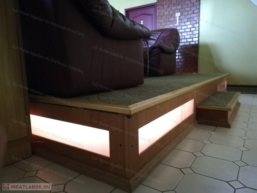 Teljes berendezéssel együtt eladó. Az építés során nagy gondot fordított a tulajdonos az apró részletekre is. Masszív díszes bárpult, Tiffany üvegek háttérvilágítással, és egyedülállóan impozáns mennyezeti megvilágított Tiffany üveg díszítéssel és több helyen rejtett hangulatvilágítások is lettek beépítve.