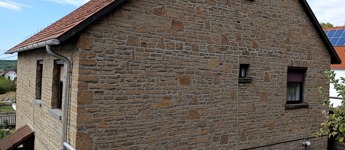 A ház tihanyi terméskőből épült, amely időállóságot és meghitt, természetes szépséget kölcsönöz neki.
