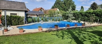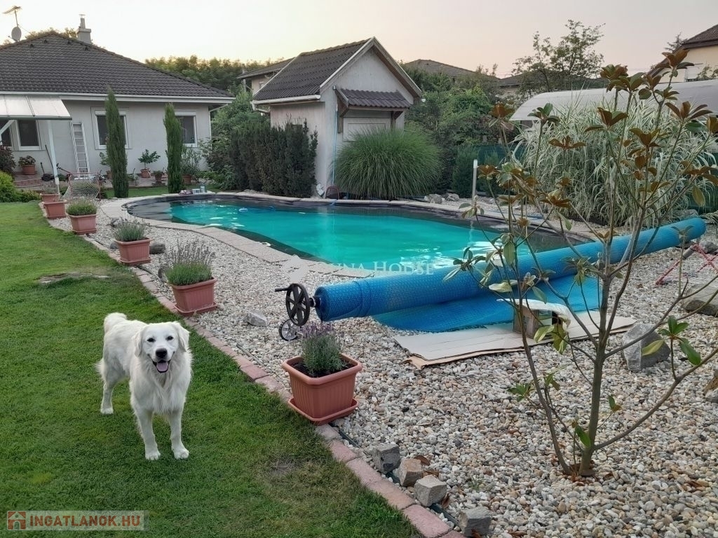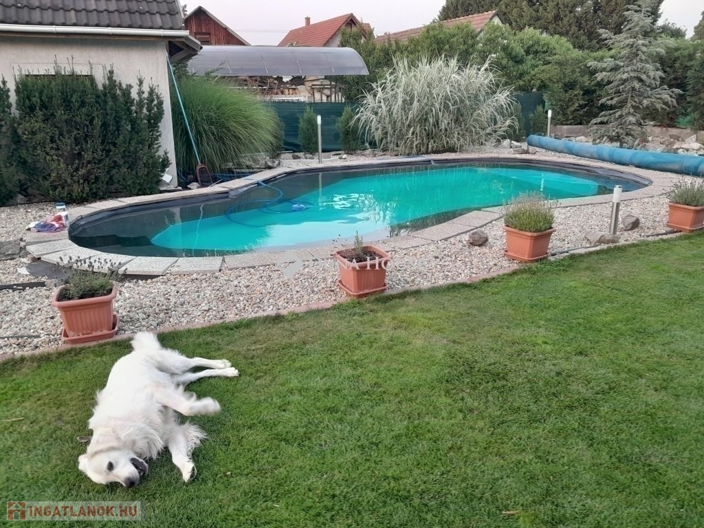 ELADÓ ÚJSZERŰ 4 SZOBÁS 118 m2 alapterületű MEDENCÉS ÖNÁLLÓ CSALÁDI HÁZ VECSÉS KIVÁLÓ RÉSZÉN!IDE VALÓBAN CSAK KÖLTÖZNI KELL, JÖJJÖN EL SZERESSEN BELE ÖN IS! Az ingatlan 2003-ban épült beton alapon, könnyűszerkezetes cserép borítású tetővel jól megfontolt praktikus kialakítású.10 cm-es homlokzati szigetelés, (A) energetikai besorolású így roppant alacsony rezsiköltségű, jogilag rendezett ingatlanról van szó. Fűtésről és meleg vízről Rhemea gázkazán gondoskodik és különálló 80 literes víztartály. További 2 klíma került elhelyezésre garanciális inverteres hűtő és fűtő. 3 ik opció a fűtésre a nappaliban található kandalló ami egy fantasztikus hangulatot is ad a család részére. Műanyag nyílászáró mindenhol szúnyogháló és redőnnyel felszerelve.Kialakítása: 3 szoba, tágas nappal+étkező, konyha, háztartási helyiség, zuhanyzó+wc, tágas fürdőszoba és wc ahol zuhanyzó és kád is megtalálható, közlekedő, kamra, 20 m2-es garázs házon belül ki és bejárás. További 50 m2-es terasz a ház körül melynek egy része zárható, téli kertnek funkcionál. A kert parkosított, és önfenntartó. A kert locsolásáról automata öntözőberendezés gondoskodik a fúrt kútból, és Husqvarna robotfűnyíró tartja rendben a fűves területeket.Medencéről tudnivalók : 12mtr x 6mtr-es vese alakú, amelynek tisztántartásáról medenceporszívó robot gondoskodik. A medence külön téli, és nyári takaróval is rendelkezik. A gépesítés a medence mellett található kis épületben kapott helyet. A kertben alkonykapcsolóval ellátott hangulatos világítás is helyett kapott.Közelben: Iskola, Óvoda, Aldi, Cba, Orvosi rendelő, Vasútállomás pár percnyire. Amennyiben felkeltettem érdeklődését, hívjon bizalommal. Hitelügyintézés további ügyvédi közreműködés egy helyen.