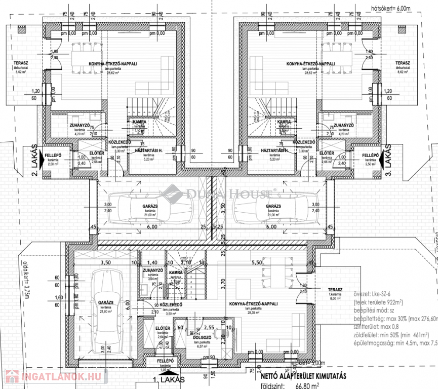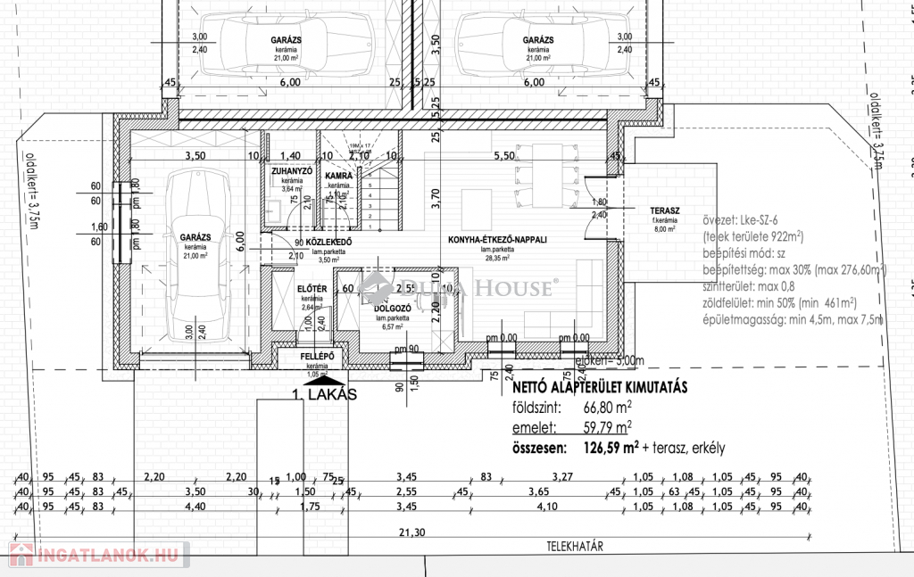 Vecsés legmodernebb fiatalos, családias részénVecsésen modern környezetben eladó új építésű családi házak.A kivitelező sok éves múlttal és rengeteg elégedett ügyféllel rendelkezik, referenciák akár itt a lakóparkban is megtekinthetőek.1-es ház127 négyzetméter hasznos lakótérrel rendelkezik, mely egy 307 négyzetméteres telken fekszik. A földszinten a nappaliból egy 8 négyzetméteres teraszon keresztül juthatunk ki a saját privát kertünkbe, továbbá az emeleten egy 8,19 négyzetméteres tetőterasz is tartozik hozzá.Nappali+4 hálószoba+ gardrób, 21nm garázs, szülőiháló.22 méter saját utcafront!2-es ház117,03 négyzetméter hasznos lakótérrel rendelkezik, mely egy 307 négyzetméteres telken fekszik. A földszinten a nappaliból egy 8,62 négyzetméteres teraszon keresztül juthatunk ki a saját privát kertünkbe, továbbá az emeleten egy 6,20 négyzetméteres erkély is tartozik hozzá.Nappali+3hálószoba+gardrób, 21nm garázs, szülőiháló.3-as ház117,03 négyzetméter hasznos lakótérrel rendelkezik, mely egy 307 négyzetméteres telken fekszik. A földszinten a nappaliból egy 8,62 négyzetméteres teraszon keresztül juthatunk ki a saját privát kertünkbe, továbbá az emeleten egy 6,20 négyzetméteres erkély is tartozik hozzá.Nappali+3hálószoba+gardrób, 21nm garázs, szülői háló.Műszaki adatok:-30as Prototherm tégla falazat-15cm-es homlokzati szigetelés-18-cm-es szigetelés az aljzat felől-8cm-es szigetelés a födém felől-3 rétegű műanyag nyílászárók kívülről antracit belülről fehér színűek-elektromos garázskapu antracit színnel-Hőszivattyús fűtés/hűtés (fan coil)-2 fürdőszoba-mosókonyha-riasztó és kaputelefon kiállás-térkövezett autóbeállóBurkolatok/beltéri ajtók/szaniterek még választhatóak.A lakópark teljesen új modern környezet, játszótérrel, fákkal. Közlekedést tekintve autóval a Gyorsforgalmi út, Üllői út, Gyömrői út az M0ás és a 4-es út 3perc alatt megközelíthető.Tömegközlekedés 3perc sétára Volánbusz Kőbánya Kispest vasútállomásig közlekedik, 10perc sétára Vecsési vonatállomás, melyről a Nyugati pályaudvarig közlekednek a vonatok.Felkeltette érdeklődését keressen bizalommal a hét bármely napján!Átadás: 2026.IV. negyedév