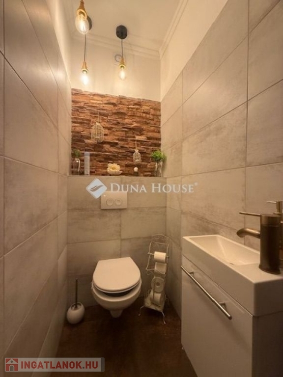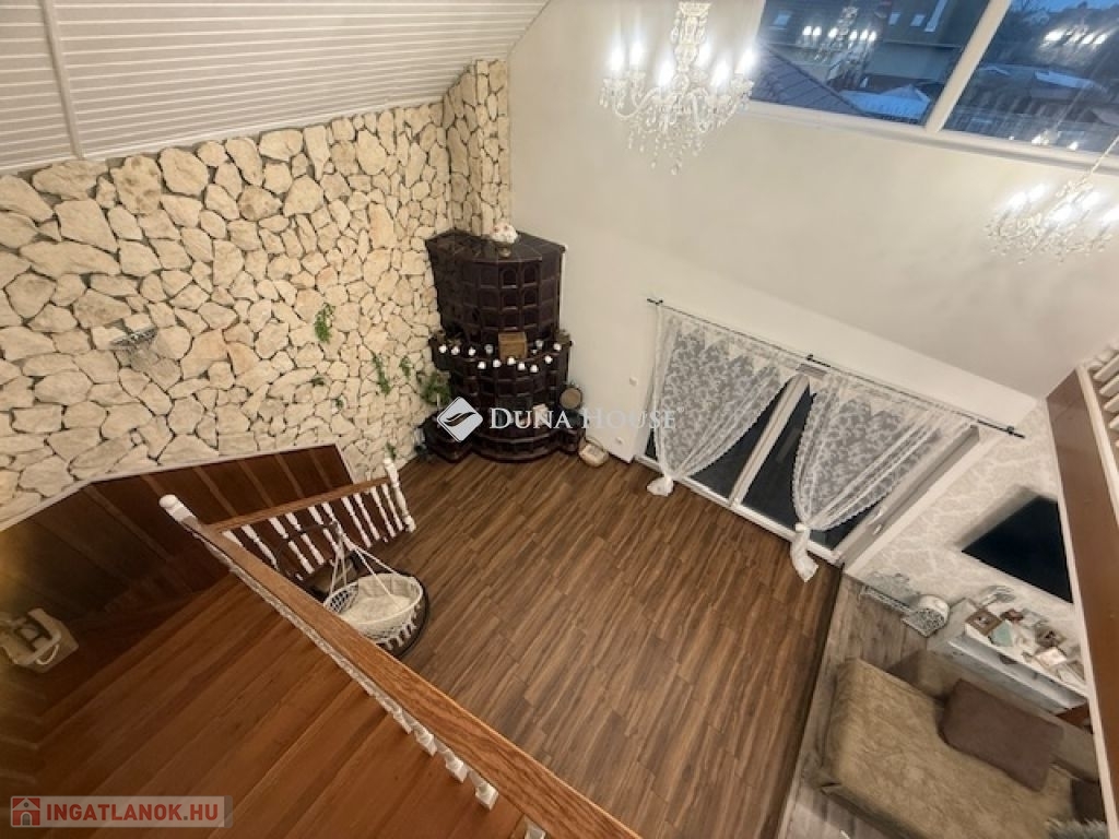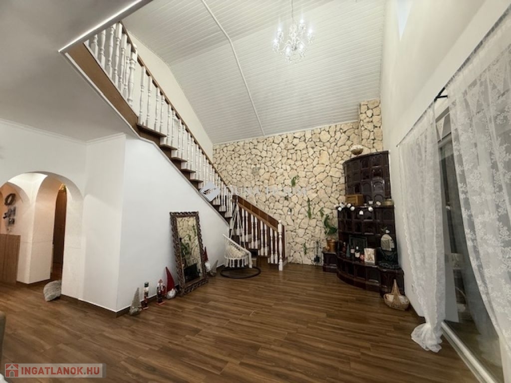 Vecsésen, a Market Central közelében eladó igényes családi házVecsés frekventált részén, a Market Central közelében megvételre kínálok egy 2000-ben épült családi házat, 370 m²-es telken.Az ingatlan 143 m² hasznos lakótérrel rendelkezik, amelyhez egy 70 m²-es pinceszint kapcsolódik. A pinceszinten található egy kétállásos garázs elektromos kapuval, valamint egy 14 m²-es kazánház.A házhoz tartozik továbbá egy 20 m²-es fedett terasz is.Műszaki jellemzők beton alap 30-as tégla falazat cserép héjazat 10 cm-es hungarocell szigetelés műanyag nyílászárók korszerűsített villanyhálózat (rézvezetékek)ElrendezésAlsó szint: hatalmas, impozáns nappali 5,4 m-es belmagassággal, amely rendkívül tágas és világos teret biztosít konyha étkezővel előszoba kamra fürdőszoba külön WC közlekedő, ahonnan közvetlen lejárat nyílik a garázsbaEmelet (a nappalin keresztül megközelíthető): nappali rész 2 hálószoba gardróbszoba fürdőszobaFelújítás és stílusAz ingatlan néhány éven belül teljes belső generálfelújításon esett át, amely során az otthon Vintage stílusban, egységes koncepció mentén, nagy odafigyeléssel készült el.Fűtés és komfort kombi gázcirkó alternatív fűtésként a nappaliban gyönyörű épített cserépkályha minden szobában klímaberendezés a nappaliban mennyezeti hűtéssel felszerelve Az ingatlan per és tehermentes és különálló ! Ez a ház kiváló állapotú, azonnal költözhető, tágas és világos terekkel rendelkezik.Hangulata meleg, otthonos, valóban szívet melengető élettér.Ide valóban csak költözni kellAmennyiben hirdetésem felkeltette érdeklődését várom megtisztelő hívását .