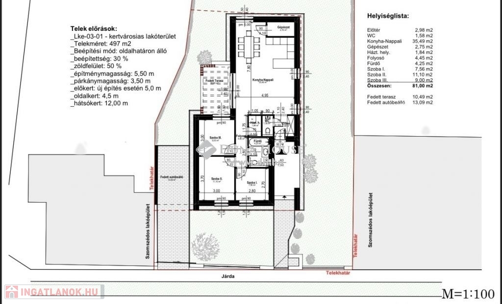 ÚJ ÉPÍTÉSŰ, MODERN, HŐSZIVATTYÚS CSALÁDI HÁZ VÉPEN!ENERGIATAKARÉKOS ( A+) nappali + 3 szobás, nettó 81 nm-es, önálló családi házat kínálunk 479 nm-es, önálló telekkel, Szombathelytől 8 km-re levő Vépen, várhatóan 2025 nyári átadással. Az ár kulcsrakészen, telek árral együtt értendő!Helyiségei:- előtér- nappali+konyha+étkező- szoba- szoba- szoba- fürdő+wc- wc- háztartási heyiség- gépészeti helyiség- közlekedő- terasz ( igény szerint. fedett)- autóbeálló ( igény szerint. fedett)Főbb jellemzői:- Igényes külső megjelenés, modern design/formaterv- Alacsony fenntarthatóság- Praktikus alaprajzokkal/, de igény szerint a belső elrendezés is még módosítható- Napfényes, nyugati tájolás- Választható belső burkolatok, szaniterek, ajtók- elektromos kapu előkészítés- elektromos redőny előkészítésFőbb műszaki paraméterek:FALAZATOK:− 30 N+F teherhordó falTETŐ:− tetőszerkezet fenyőből, favédelemmel ellátva− korcolt lemez fedés− 30 cm vastag szigetelésÉPÜLETGÉPÉSZET:− hőszivattyú, padlófűtés: − 1 db hütő-fütő klíma: igen Hisense Energy Pro Plus 3,5 kW A+++ telefonról vezérelhető okosklíma- villanyhálózat: három fázis + H - tarifás mérő óraKÜLSŐ NYÍLÁSZÁRÓK:− fehér/antracit színű műanyag nyílászáró 5 kamrás profilból, 3 rétegű üvegezéssel: − bejárati ajtó antracit színben, több pontos biztonsági zárralHOMLOKZAT:− 15 cm vastagságú EPS polisztirol hőszigetelésCsaládi Otthonteremtési Kedvezmény + Hitel igényelhető!Falusi CSOK is igénybevehető!Naprakész információk a Duna House irodákban!Műszaki leírás, bővebb tájékoztatás Nálunk!További információkért, fotókért és a megtekintés miatt kérem, hívjon vagy küldjön e-mailt!És ne feledje, vevőinknek minden szolgáltatásunk INGYENES!