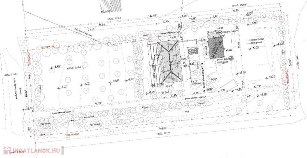 A terület lakott külterület, az Oltay uradalomhoz tartozott, eredeti rendeltetése szerint iskola épület volt. A telken jelenleg egy cca. 295 m 2 (pince+fsz.+tetőtér) lakóépület rendeltetésű kúria áll, amely a XIX. Század második felében épült, jelenleg helyi védelem alatt áll. A kúria teljes hosszában az előző tulaj egy nagyméretű teraszt alakított ki, melynek mérete: 6,3 m x 25 m. A házban jelenleg 2 külön bejáratú lakrész található, melyek egyenként 105-105 m 2 -esek. Az épület jelenlegi kamrájából egy pincelejárat lett kialakítva, amely egy 25 m 2 –es pincehelyiségbe vezet. Az ingatlan saját 18 m-es fúrt kúttal rendelkezik. A terület 3 x 32A vezérelt és 3 x 32A normál hálózati áramcsatlakozással lett kiépítve. A ház fűtése jelenleg hagyományos kályhákkal van megoldva.