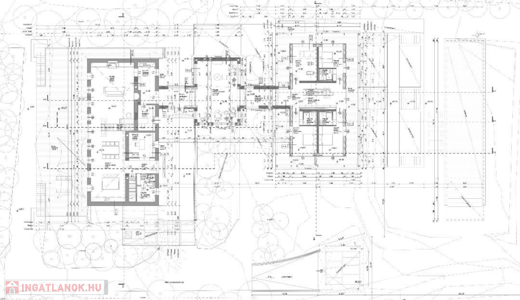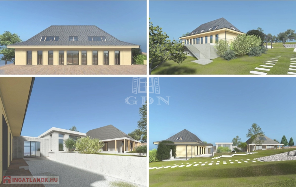Tento krásný panoramatický pozemek o rozloze 7118 m² se nachází 16 km od Keszthely a Hévízu, nad Szentgyörgyvárem, v osadě Alsómánd puszta. Oblast je obytná, patřila panství Oltay a původně byla zamýšlena jako školní budova. Na pozemku se v současné době nachází sídlo o rozloze cca 295 m² (suterén + přízemí + podkroví), které bylo postaveno ve druhé polovině 19. století a je v současné době pod místní ochranou. Předchozí majitel vytvořil po celé délce sídla velkou terasu o rozměrech 6,3 m x 25 m. Dům má v současné době 2 samostatné vchody, každý o rozloze 105-105 m². Z komory současné budovy byl vytvořen vstup do sklepa, který vede do sklepní místnosti o rozloze 25 m². Nemovitost má vlastní vrtanou studnu o délce 18 m. Areál je vybaven 3 x 32A řízenými a 3 x 32A běžnými elektrickými přípojkami. Dům je v současné době vytápěn tradičními kamny. Za velkým domem se nachází menší, dvoupatrový dům o rozloze 120 m2 postavený předchozím majitelem, který je vzhledem ke svému stavu považován za zbouratelný. V zadní části pozemku byl vytvořen sklep o rozloze 80 m2. Současný majitel si také nechal vypracovat plán rekonstrukce, který lze v případě potřeby využít. 2. Plánovaný stav Nový majitel by chtěl budovu rozšířit, zachovat stav střešní konstrukce – dle doporučení znaleckého posudku na ochranu dřeva –, vybudovat půdní prostor, v případě potřeby ji zrekonstruovat, sladit vnější vzhled s okolím a co nejvíce zachovat atmosféru. Dále by se měl půdorys a vnitřní funkce upravit dle vlastních potřeb, jako přístavba stávající budovy by měl být vytvořen penzion (pro vlastní potřebu) a v krční části spojující obě budovy by měla být umístěna zimní zahrada/palmový skleník. Na konci zahrady bude místo sklepa o rozloze 80 m2 vytvořen vyhřívaný bazén. V přízemí se bude nacházet obytná část stávající budovy sídla. Chodba, koupelna, technická místnost (strojní), dvě pracovny, kuchyň s jídelnou, schodiště vedoucí do podkroví, obývací pokoj, společenská místnost. V podkroví by se měly nacházet 2 ložnice, šatna a dvě koupelny. Stávající budova je s novým penzionem propojena temperovanou šíjovou částí. Mezi nimi bude vytvořena temperovaná zimní zahrada/palmový skleník, která bude propojena s šíjovou částí. Místnosti v penzionu, které se otevírají zepředu, zahrnují vyhřívanou kuchyň s jídelnou, posilovnu a 3 pokoje pro hosty s vlastními koupelnami. Schodiště vedoucí do podkroví je přístupné z foyeru. V podkroví penzionu se nachází strojírna, 2 ložnice s vlastními koupelnami a krytá lodžie s výhledem do zahrady.