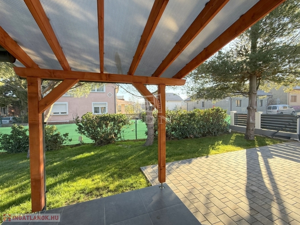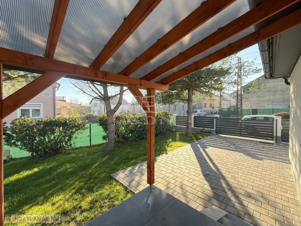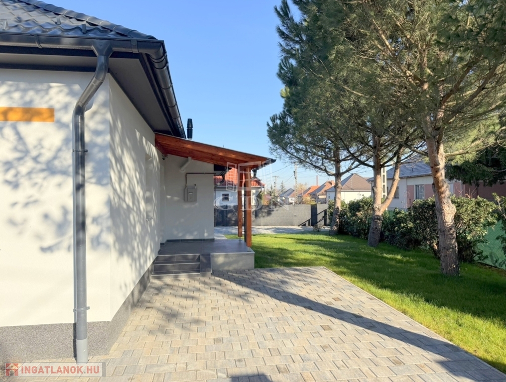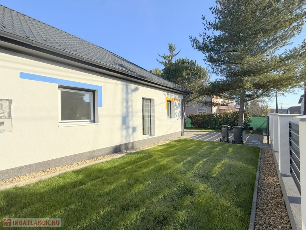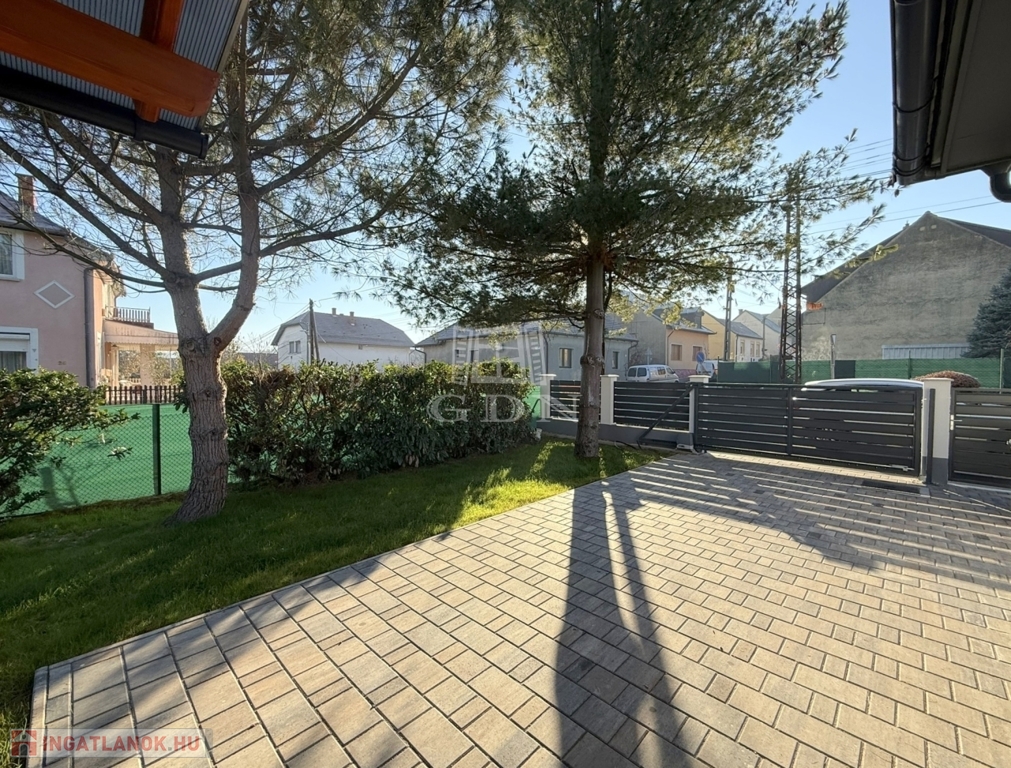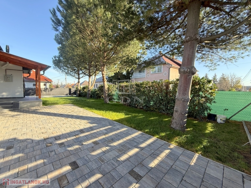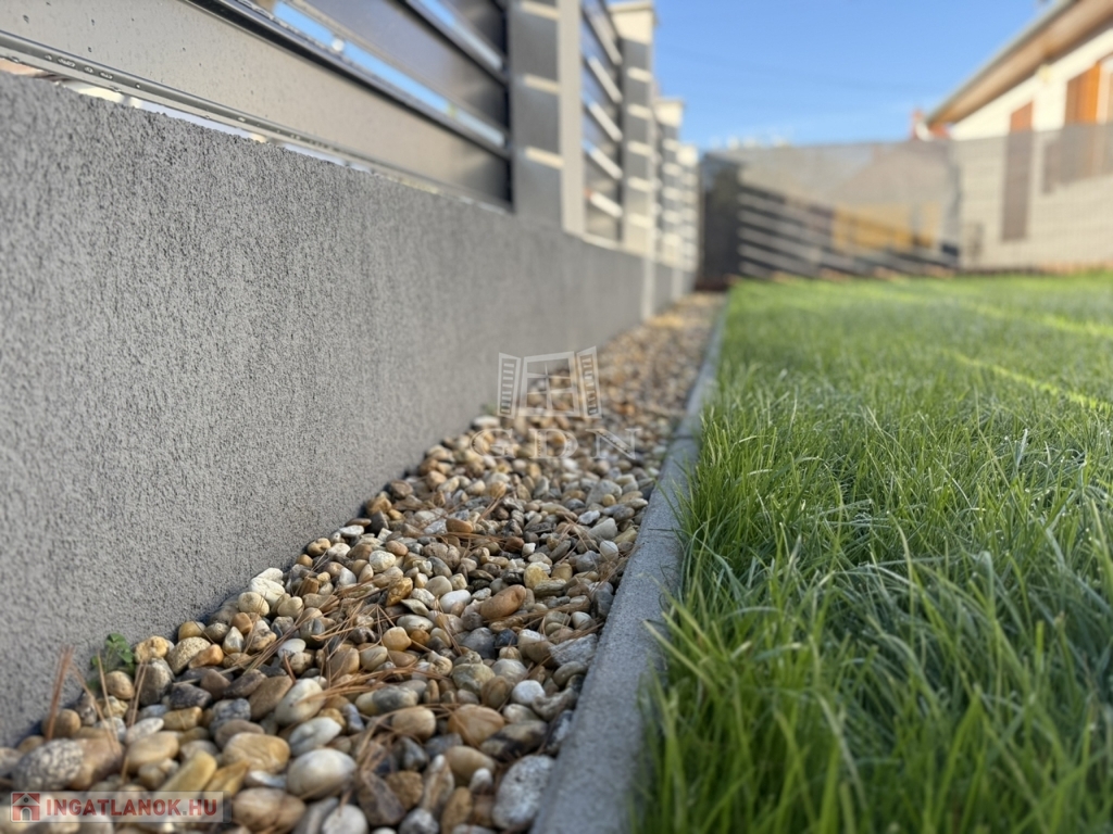 Az 540 m2 - es sík terület elő -és hátsó kertjét kellő méretben befüvesítették, mely mellett egy térkövekből igényesen kialakított járdát és autófeljárókat is elkészítettek.