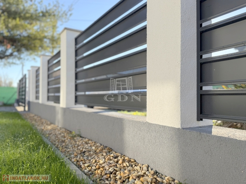 Új, gondozásmentes kerítés került kiépítésre, mely alját esztétikus díszkövekkel borították.