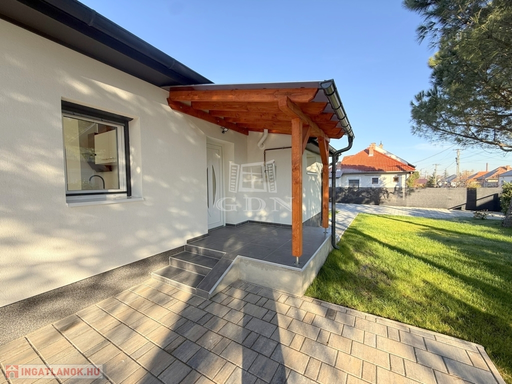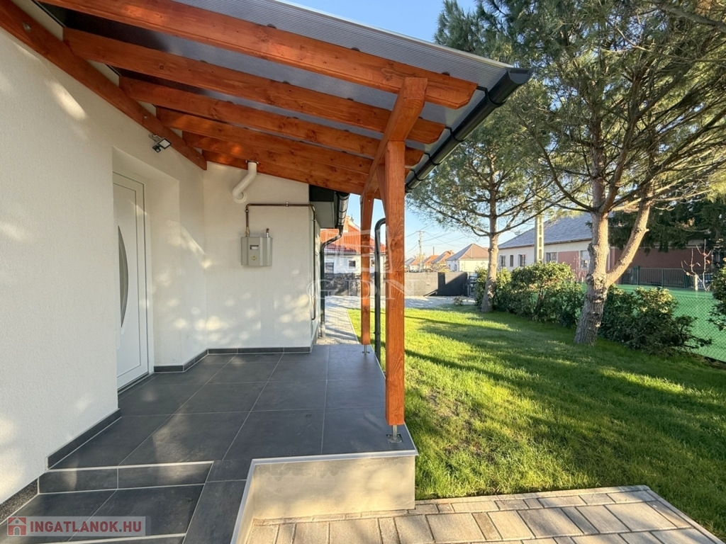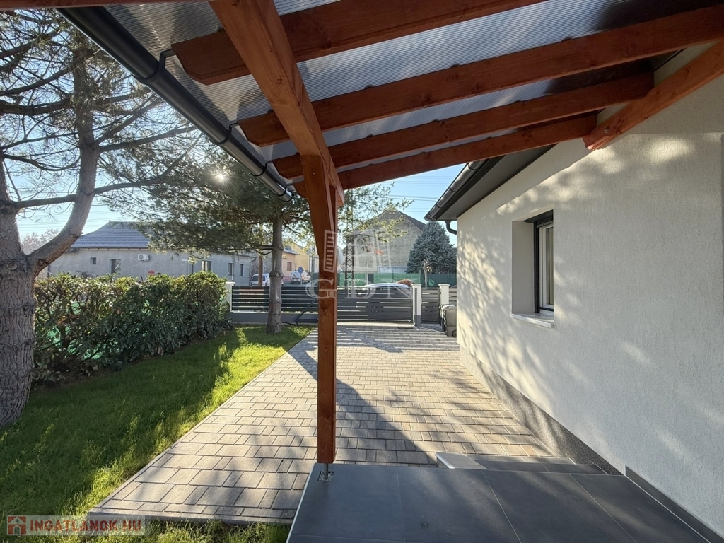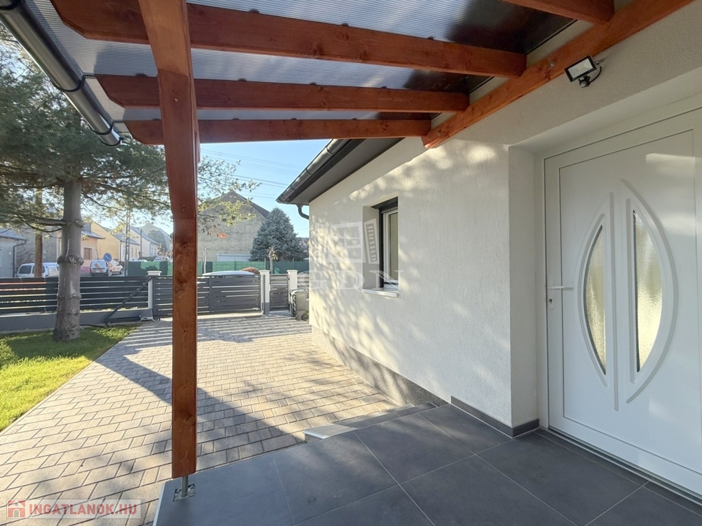 A családi házhoz tartozik egy 24 m2 - es új garázs, egy mellette megépült fedett autóbeállóval.