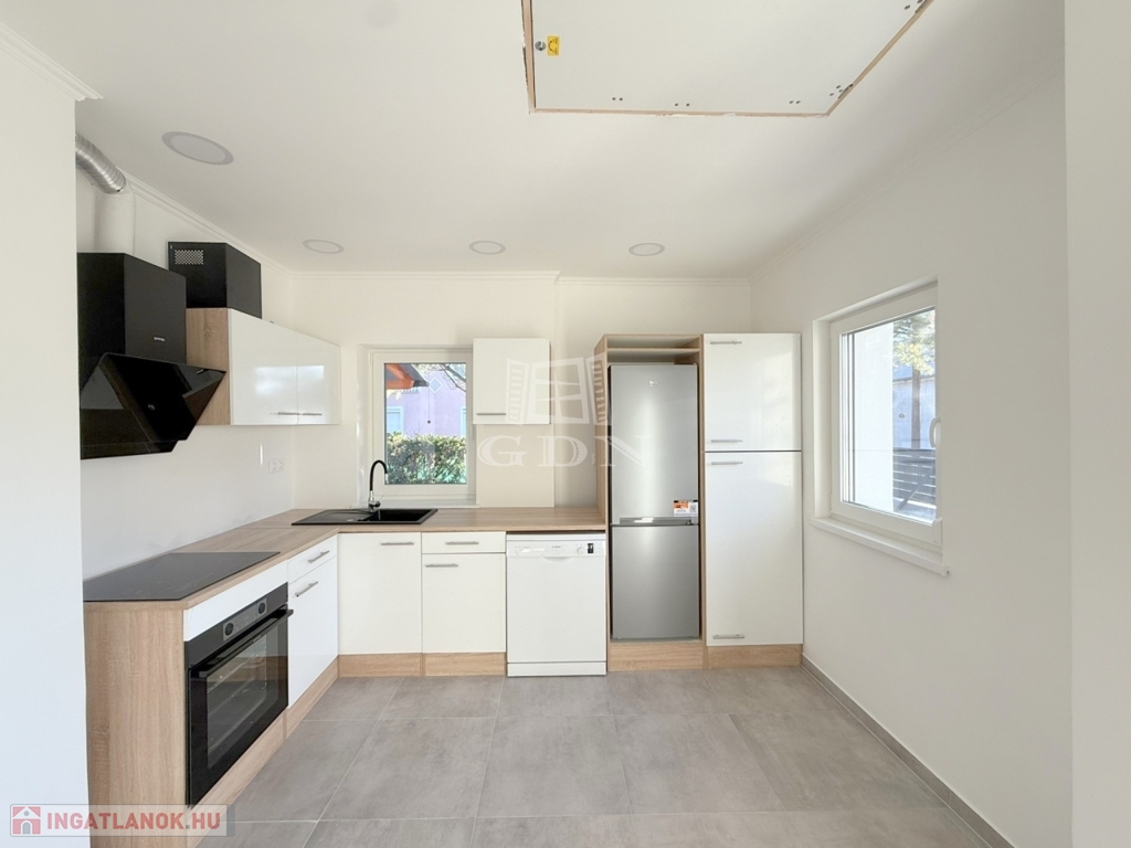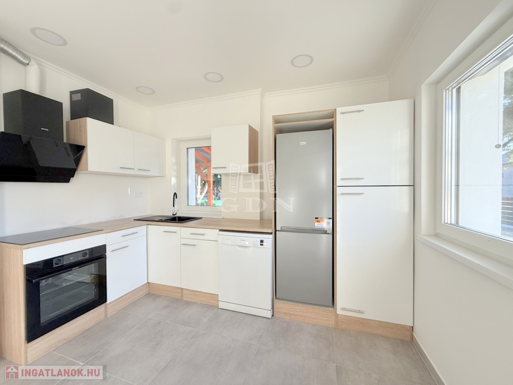 Konyhája teljes mértékben gépesített, a beépített mosogatógép, hűtő, sütő és főzőlap még mind - mind garanciálisak.