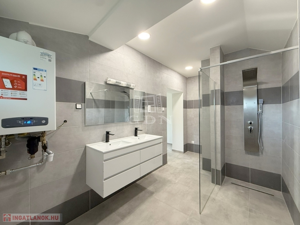 Fűtésrendszere is kiépítésre került egy garanciális kombi gázkazán formájában, mely a melegvízellátásért és padlófűtéssel történő fűtésért is felel.