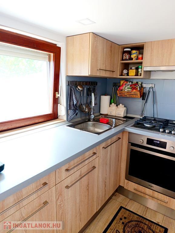 70 nm-es lakótérrel rendelkező ház teljesen bútorozott és gépesített – modern konyha, minőségi berendezés, kerti gépek, kerti bútorok melyek a vételár részét képezik