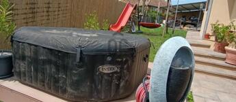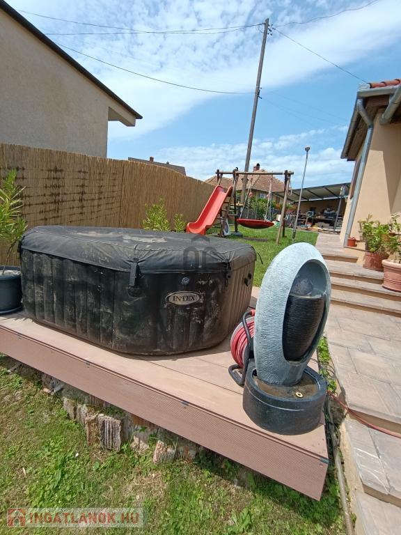 869 nm-es körbekerített, teraszos kialakítású telken fekszik, kerti sütővel, Jakuzzival, játszótérrel, trambulinnal, kerti kiegészítőkkel, tágas garázzsal és fedett gépkocsi beállóval melyek benne vannak az árban