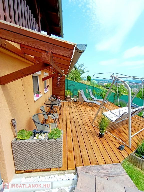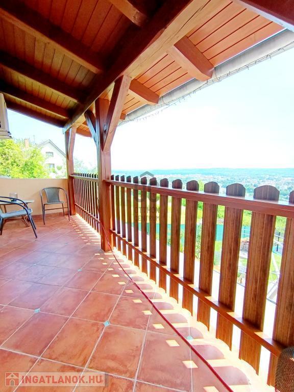 Felső szinten: 2 hálószoba, tágas fürdő+WC, nappali panorámás erkéllyel
