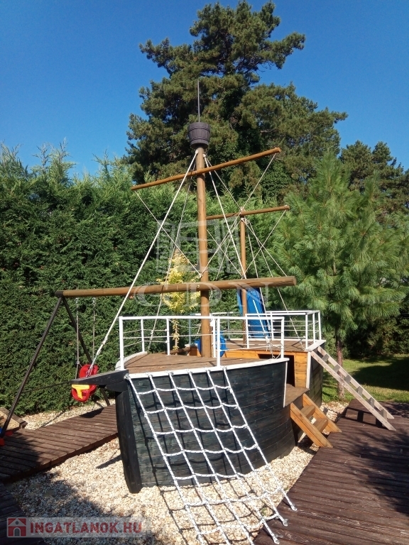 Zamárdi keresett részén, a víztől ötszáz méterre, kényelmesen megközelíthető helyen eladó ez a luxus, számos célra hasznosítható, jelenleg LAKÓHÁZ minősítésű ingatlan. A ház 2017-ben épült minőségi anyagok felhasználásával. Egy gyönyörű parkosított kert öleli, amelyben kerti beálló, pihenő, fedett grillező, egy hatalmas műfüves sportpálya, kis játszótér és egy úszómedence is található. Itt kapott még helyet egy 24 nm területű kerti tároló is, amely akár plusz nyaralóként is funkcionálhat. A ház vízellátását a vezetékes vizen kívül két kút is segíti. A ház kiválóan alkalmas mind állandó lakásra mind üzleti célra. A földszinten egy belépőből nyílik a hatalmas mosókonyhával és beépített bútorzattal ellátott nagy területű garázs. A belépő-közlekedő helyiségből juthatunk fel a ház emeletére, de innen nyílik a tágas és kertkapcsolatos nappali is amelyben helyet kapott egy hangulatos bár is. Ugyancsak a nappaliból nyílik egy kertkapcsolatos hálószoba saját kádas-zuhanyzós fürdővel és vécével, valamint innen nyílik két gardrobe is, továbbá innen juthatunk még egy plusz ugyancsak kertkapcsolatos helyiségbe, amelyben egy télen is használható jacuzzi várja a pihenni vágyókat. A nappali mellett kapott helyet egy tágas konyha étkezővel. Ez is közvetlen kertkapcsolattal bír. A földszinten található még három külön hálószoba saját tusolós fürdővel vécével. A ház emeletén található hat hálószoba, ebből 4 egymásba is nyitható. Itt két hálónak saját fürdőszobája van és van még két külön tusolós fürdő is wc-vel. Itt került kialakításra egy óriási egy légterű hobbi szoba is, amely akár további hálószobákká alakítható. Az épület teljesen légkondicionált. Fűtése alapvetően gázkazánról történik, de lehetőség van a klímákkal vagy kandallóval való fűtésre is. A használati melegvíz ellátást gáz és villany is biztosítja. Az ingatlan beépített bútorzattal (igény szerint teljes bútorzattal) eladó.