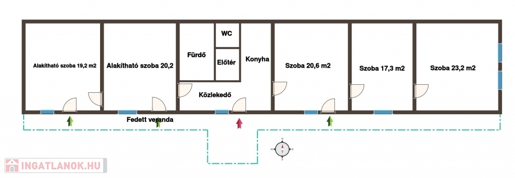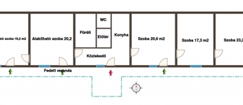 A ház 87 m²-es, jelenleg 3 szobából áll, de az ingatlan 128 m²-re bővíthető, így akár 5 szobássá is alakítható kiváló lehetőség nagyobb családoknak, illetve vendégház kialakítására.