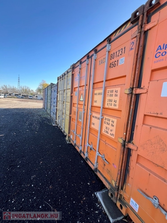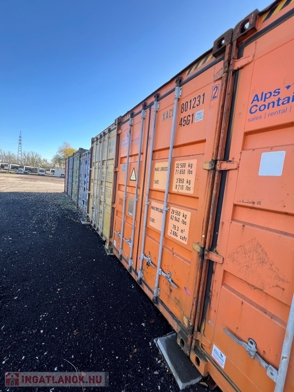 Győr-Gyárváros rendkívül kedvelt, klasszikus részén, Ipari Parktól, M1-es autópályától alig pár perces távolságra, aszfaltos útról megközelíthető, ipari kamerával és térvilágítással ellátott, 55.000 m2-es (5,5 ha) körbekerített telken lévő, 40 lábas/28 m2-es, (2,33 m x 12,1 m) 75,8 m3-es (2,33 m x x 12,1 m x 2,69 m) kétajtós konténer, széleskörű felhasználhatósággal kiadó.