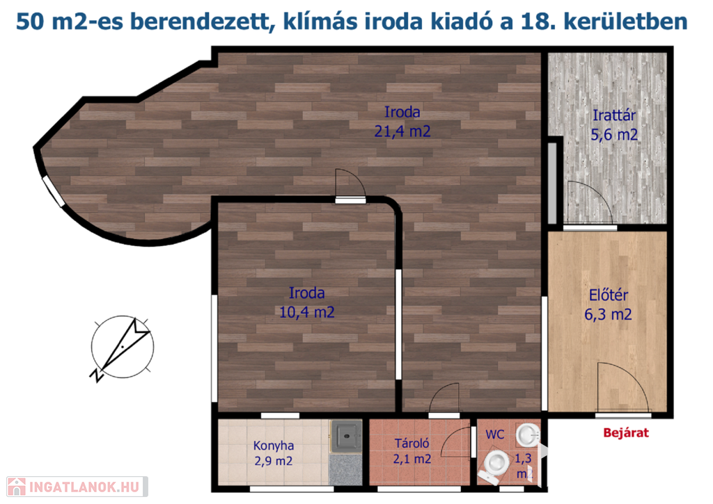 50 M2-ES BERENDEZETT, KLÍMÁS IRODA KIADÓ A 18. KERÜLETBEN