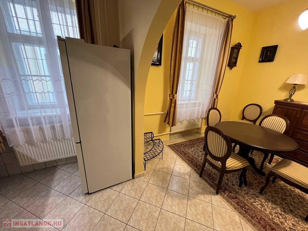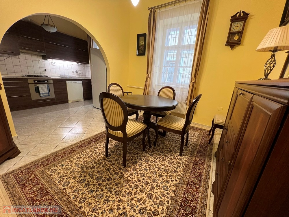 Győr-Belvárosának rendkívül kedvelt, könnyen parkolható, klasszikus részén, Széchenyi tértől, Dunakapu tértől, Baross úttól, Árkádtól pár perces sétatávolságra, a Rákóczi Ferenc úton, csendes társasház földszintjén, méretes konyha – étkező - nappali + 2 hálószobás, továbbá különálló fürdőszobával, különálló WC-vel és kamrával is felszerelt, 61 m2 hasznos alapterületű bútorozott és gépesített téglalakás, akár irodai használatra is kiadó.