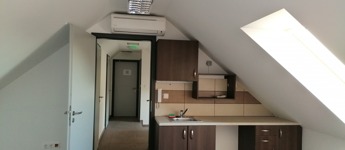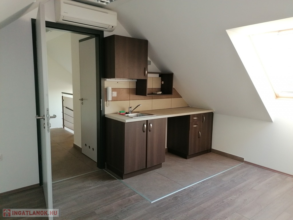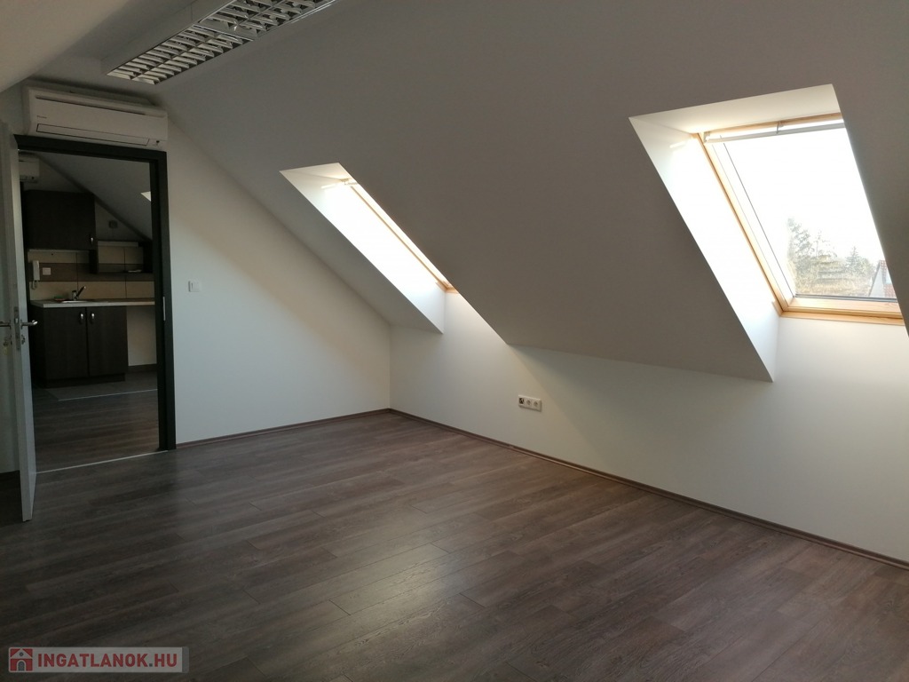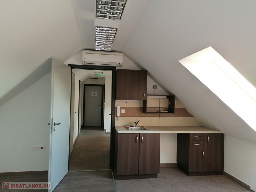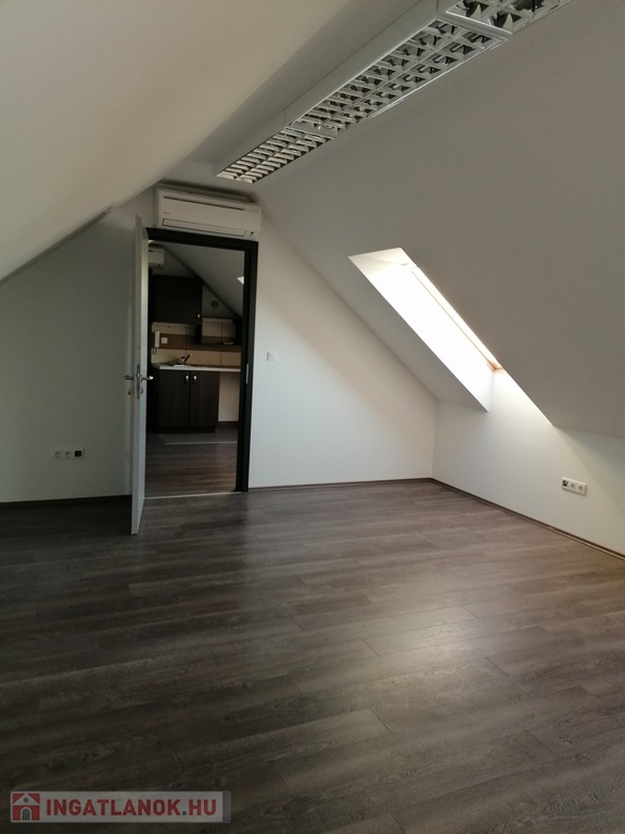Az épület modern geotermikus fűtésű, második emeleten tetőtérben elhelyezkedő iroda 2 légterű, 35,5 m2-es tartozik hozzá egy minikonyha és saját mosdó, légkondícionált. Alkalmas szolgáltatás vagy iroda használatra.