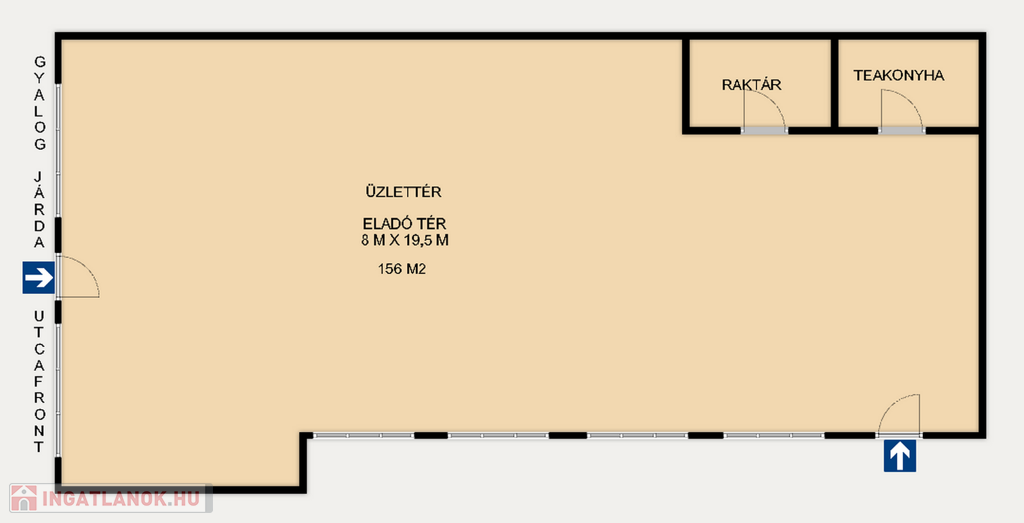 - Terület: (19,5 m x 8 m) = 156 m2