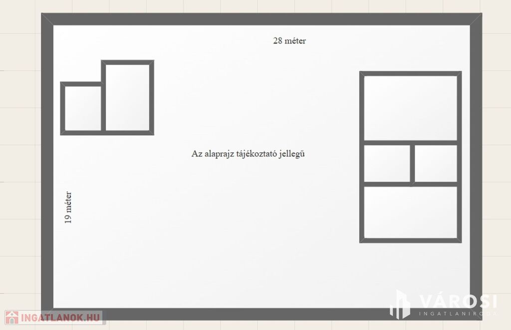 A telek hossza (szélessége) utcafronton 28 méter, mélysége 19 méter.