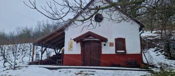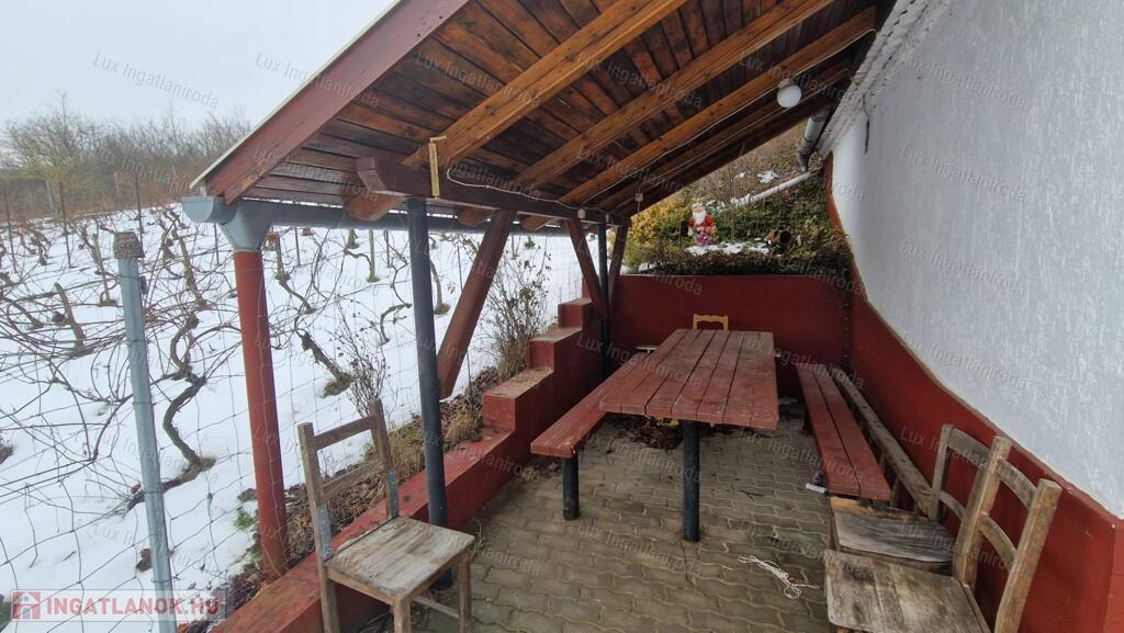 Az épület 38nm+10 nm száraz pince. Villany van. A présház fűtését egy kis kályha biztosítja a hidegebb napokon, mely az ingatlanban található többi ingósággal együtt a vételár részét képezi!